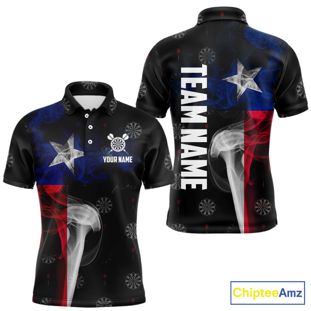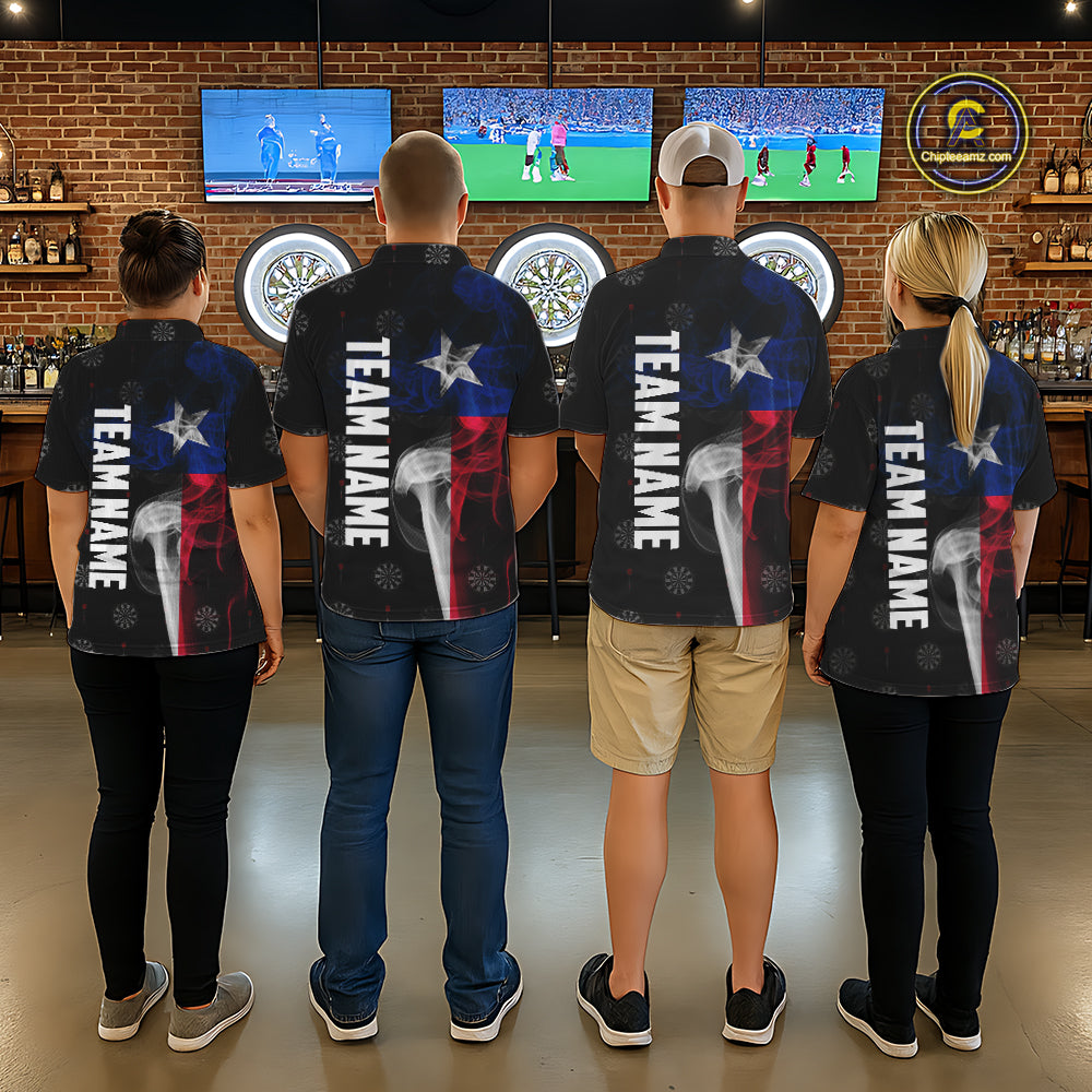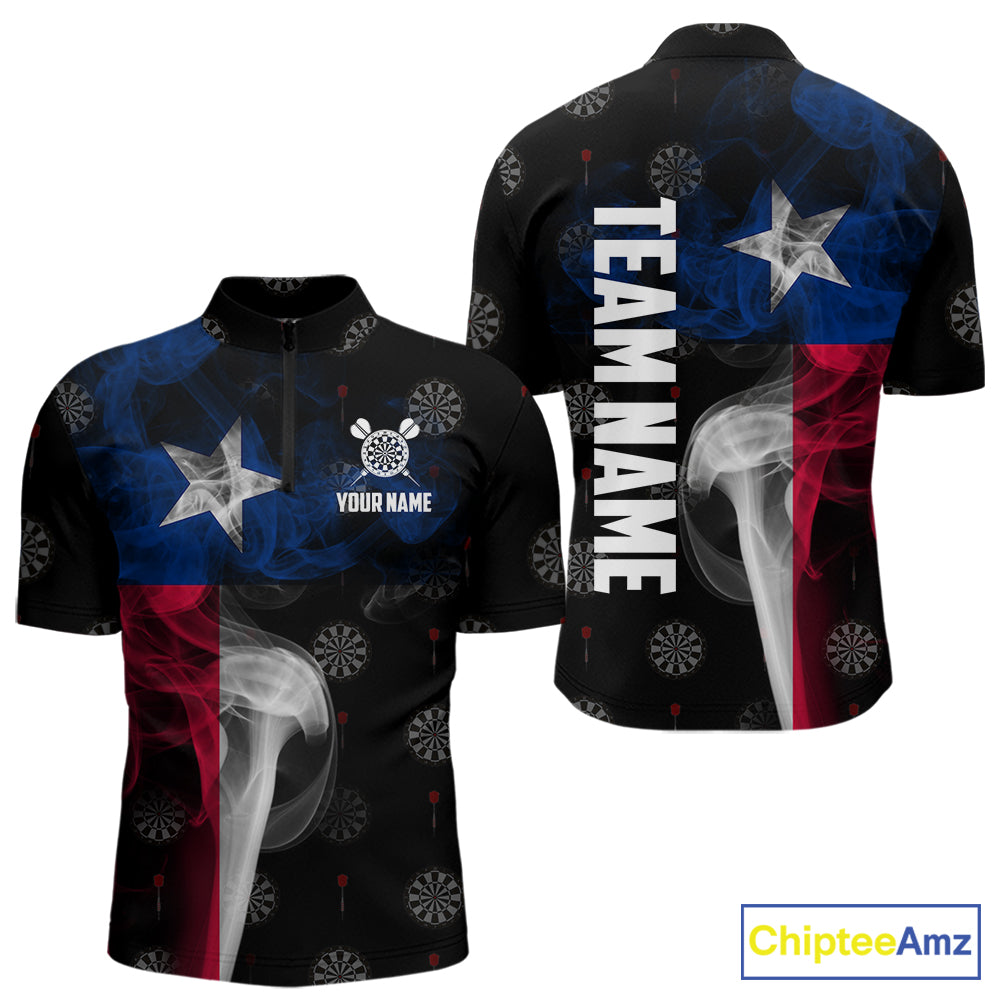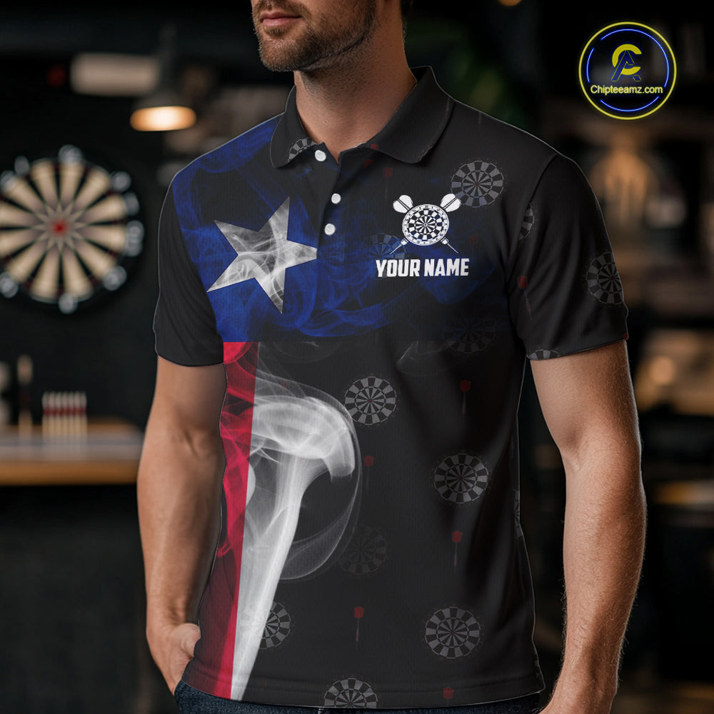 Personalized Texas Flag Smoke Darts Polo & Quarter Zip For Men Custom Texas Darts Team Jersey TDM5487