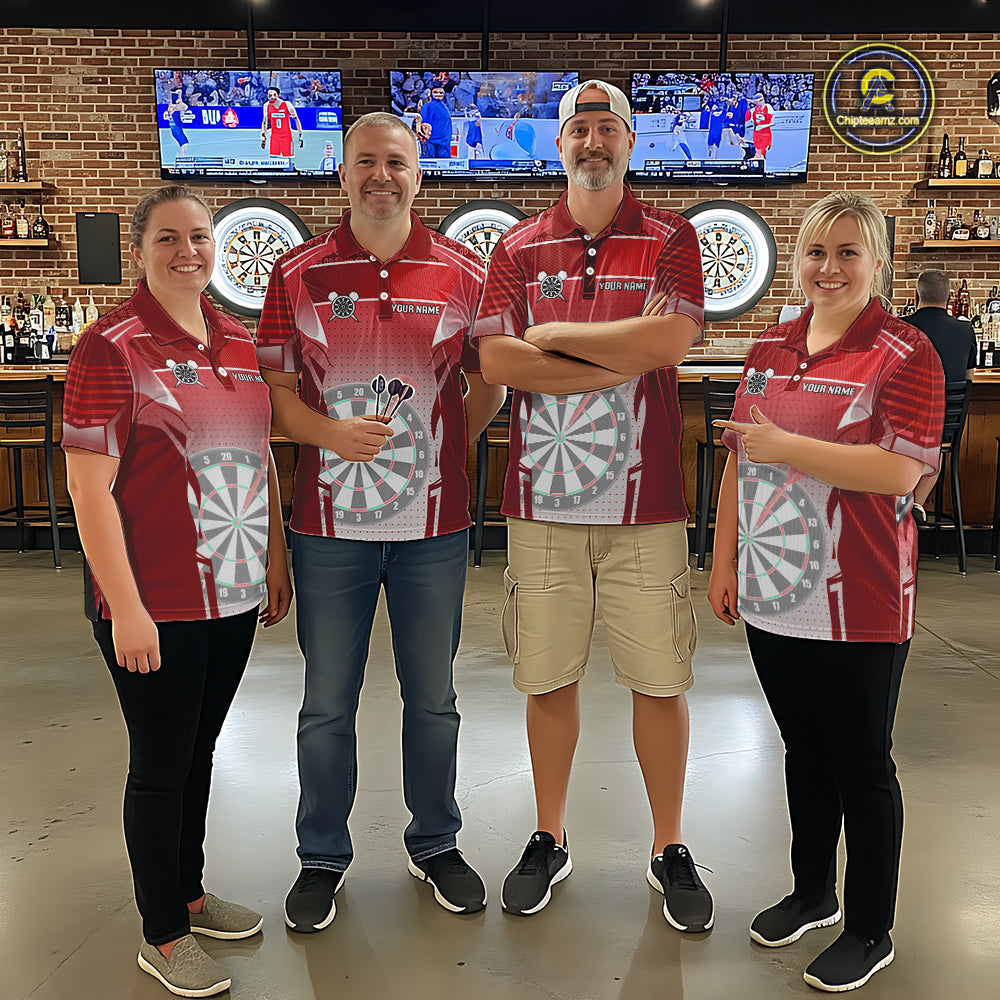 Red Dartboard Lights Custom Darts Polo & Quarter Zip For Men, Personalized 3D Darts Team Jersey TDM5498