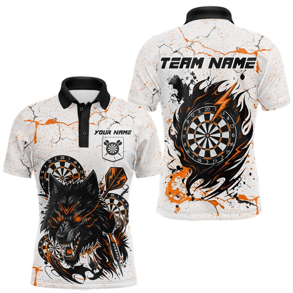 White Grunge Wolf Dart Shirt & Pocket Option Custom Men's Dart Jersey|Orange TDM5511