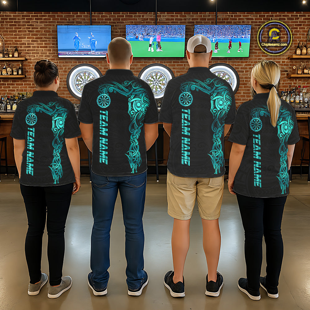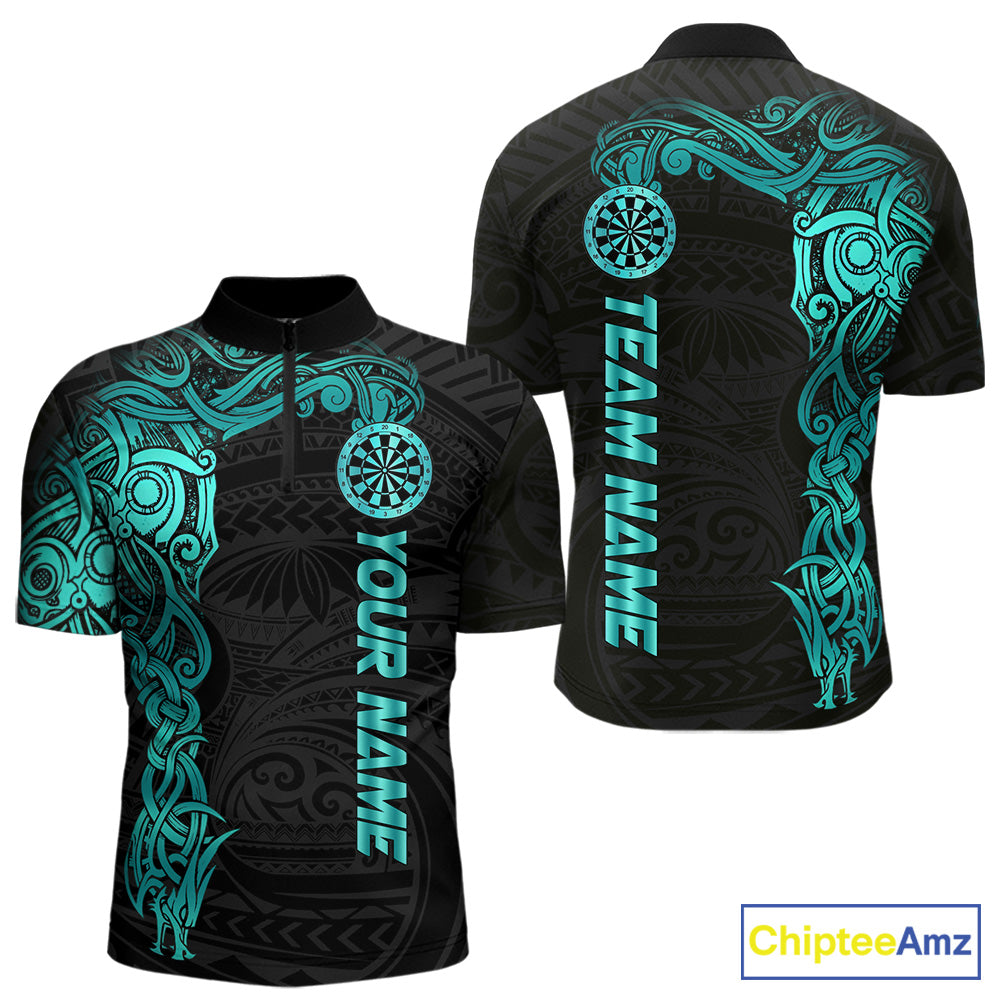 Black And Turquoise Tribal Darts Shirt For Men Custom Darts Jersey Team Polo & Quarter Zip TDM5559