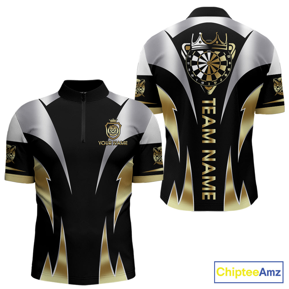 Personalized Crown Darts Shirt For Men Custom Darts Tournament Jersey Team Polo & 1/4 Zip |Gold TDM5573