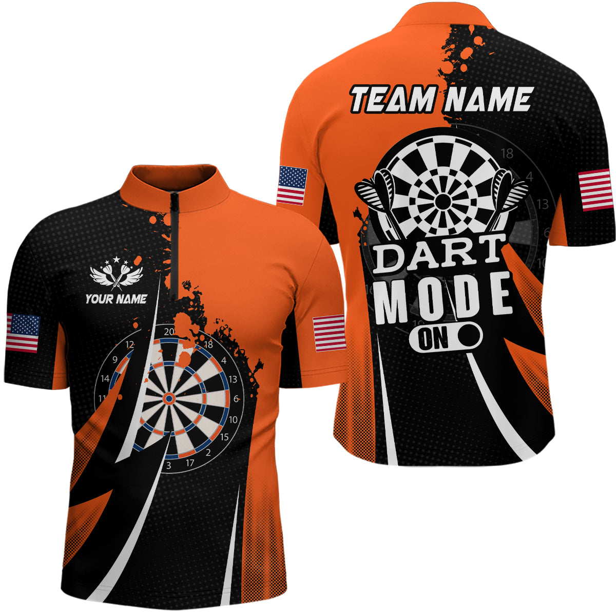 Personalized Orange Dart Mode On Men Darts Polo & Quarter-Zip Shirt Custom Darts Jersey Team Shirts TDM1652