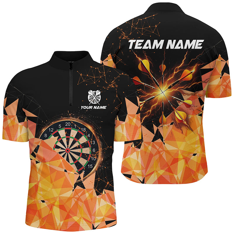 Orange Darts Arrow Thunder Lighting 3D Darts Polo & Quarter-Zip Shirts For Men Custom Darts Jerseys TDM1667