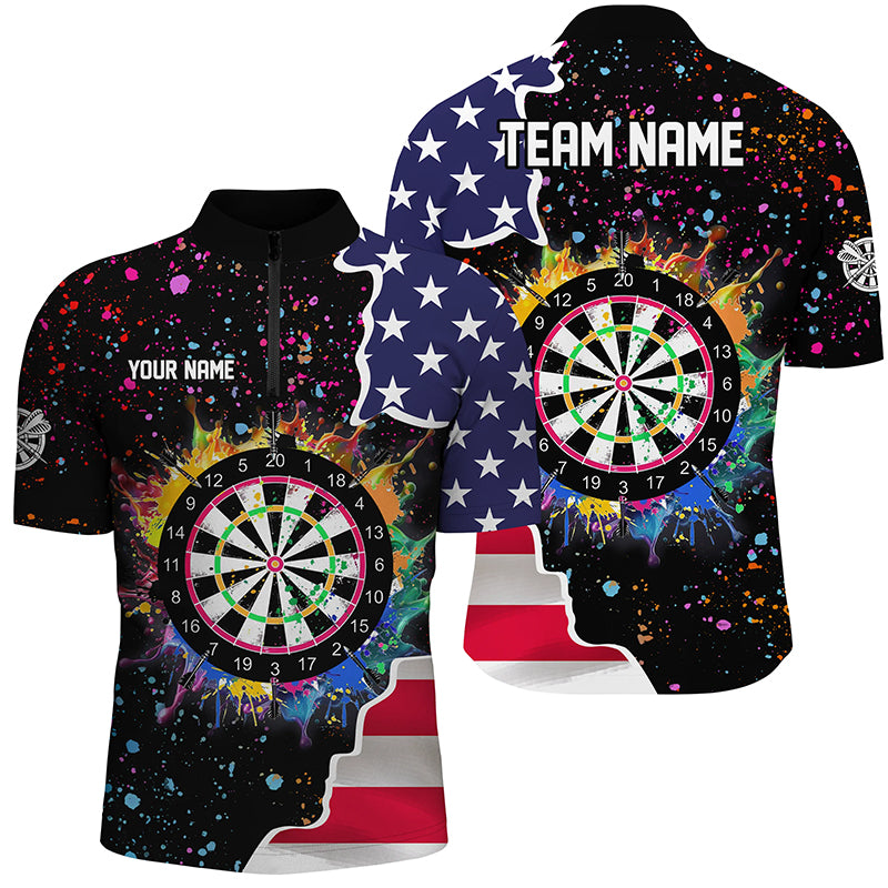 Grunge Colorful Darts Board US Flag Darts Shirts For Men Custom Patriotic Darts Team Jerseys TDM1681