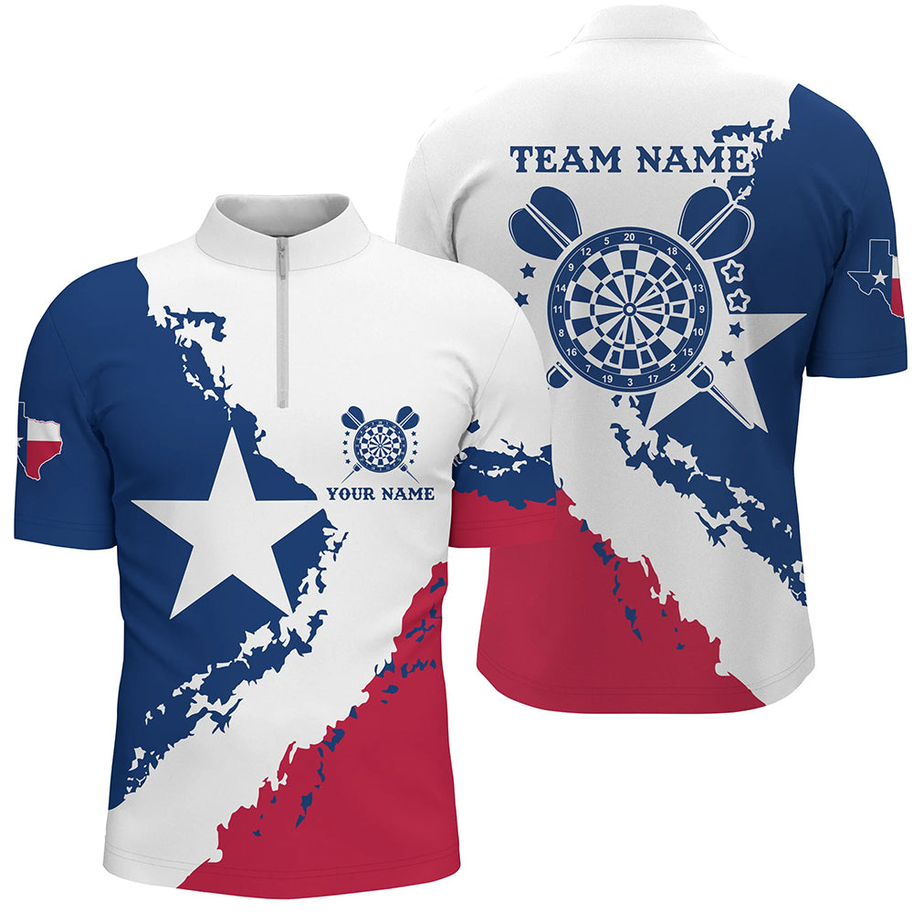 Grunge Texas Flag Darts Polo & Quarter-Zip Shirts For Men Custom Patriotic Darts Jerseys Attire TDM1689