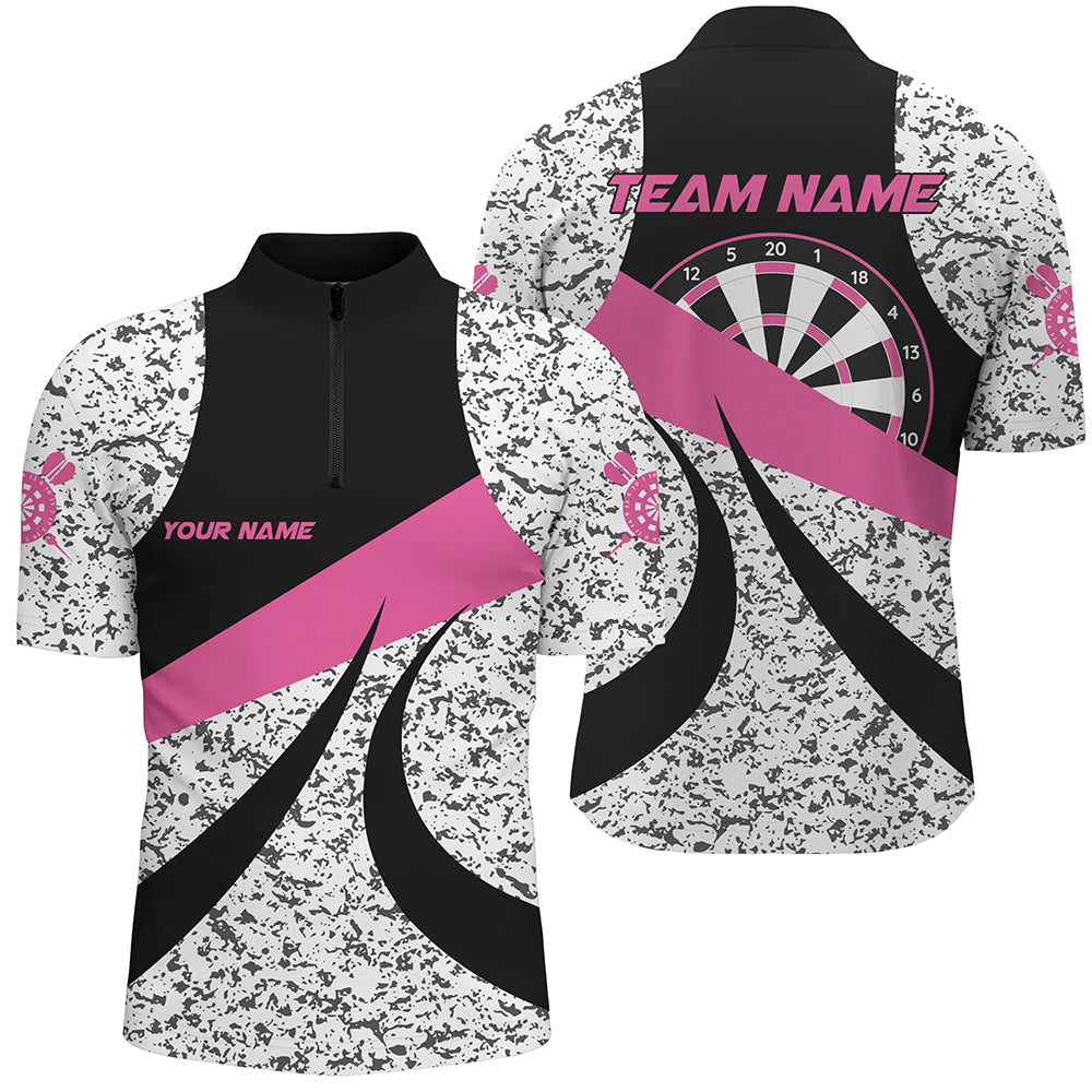 Personalized Grunge Pink Darts Polo & Quarter-Zip Shirts For Men, Unique Darts Team Jerseys Attire TDM1723