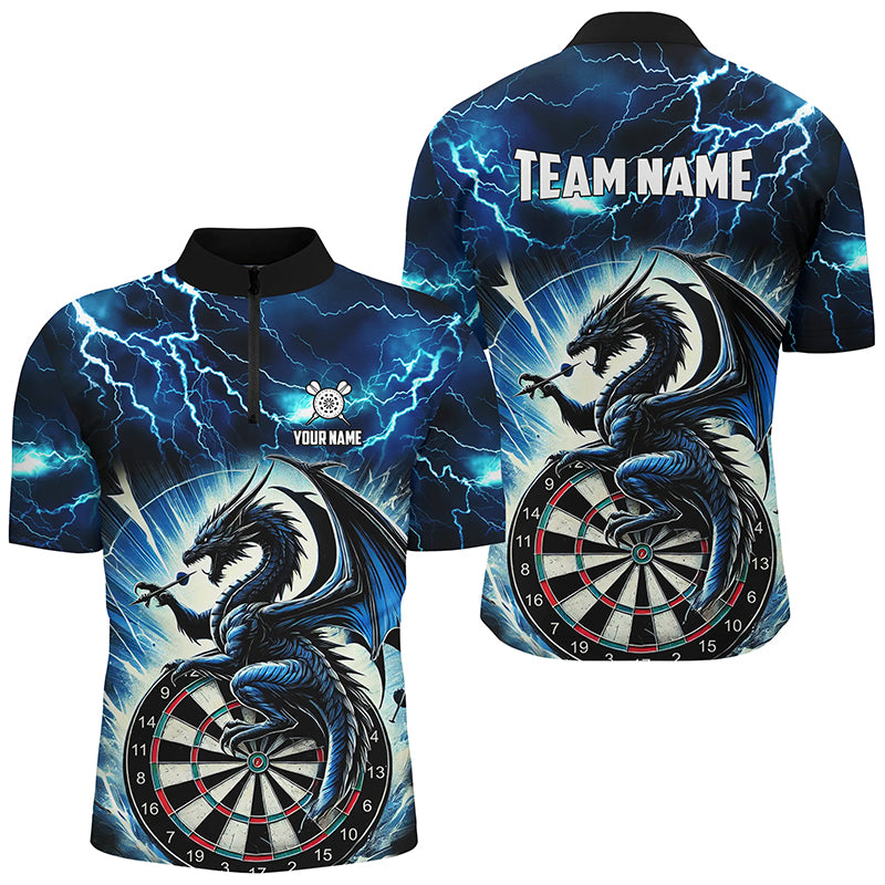 Lightning Thunder Dragon Custom Blue Darts Polo & 1/4 Zip Shirts For Men, Darts Team League Jerseys TDM2477