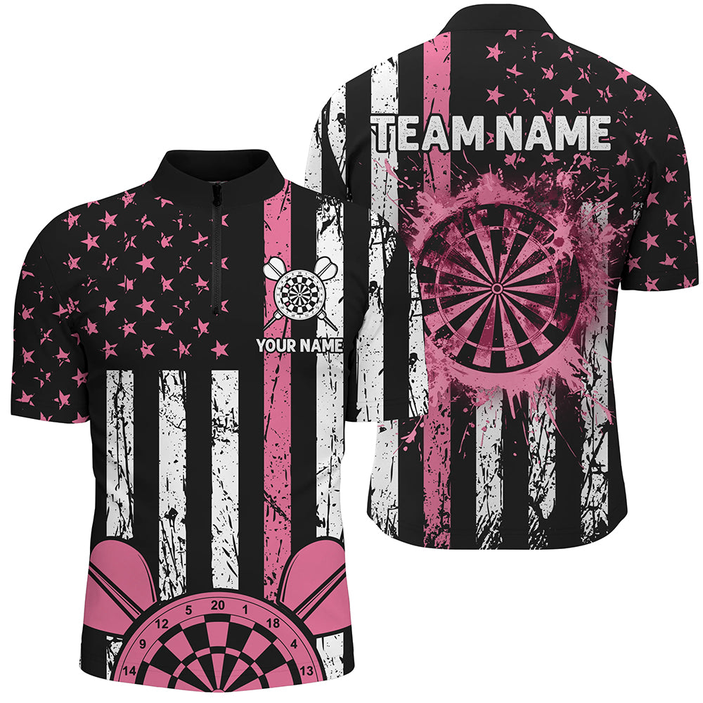 Custom Pink Grunge American Flag Patriotic Darts Shirts For Men Darts Tournament Jersey Retro Style TDM2532