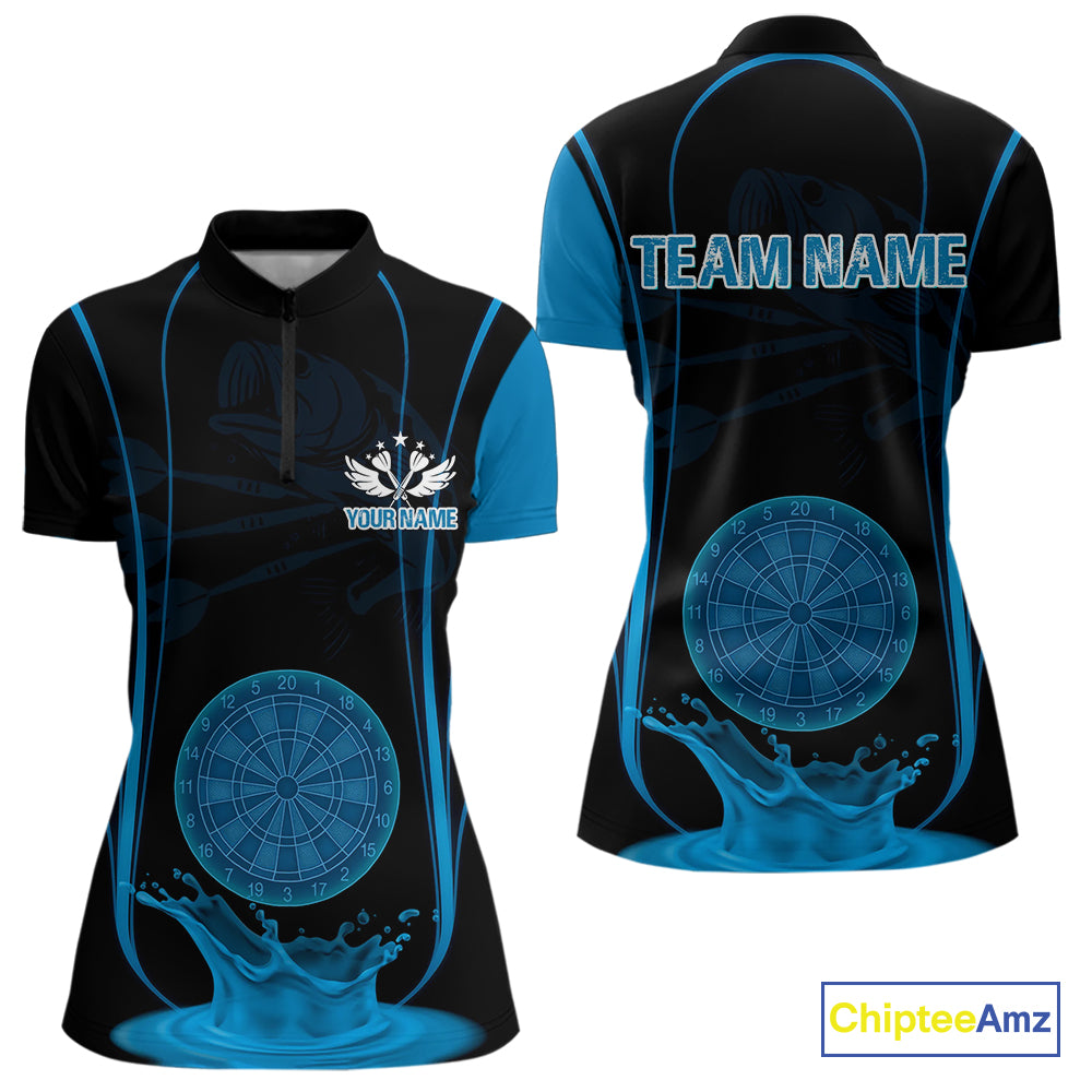 Azure Water Lightning Dartboard & Fish Darts Shirt For Women - Custom Name & Team NYN0617