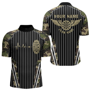 Green Camo Dartboard Pulse Heartbeat Custom Men Dart Shirts, Funny Wings Cool Dart Team Jerseys TDM3619
