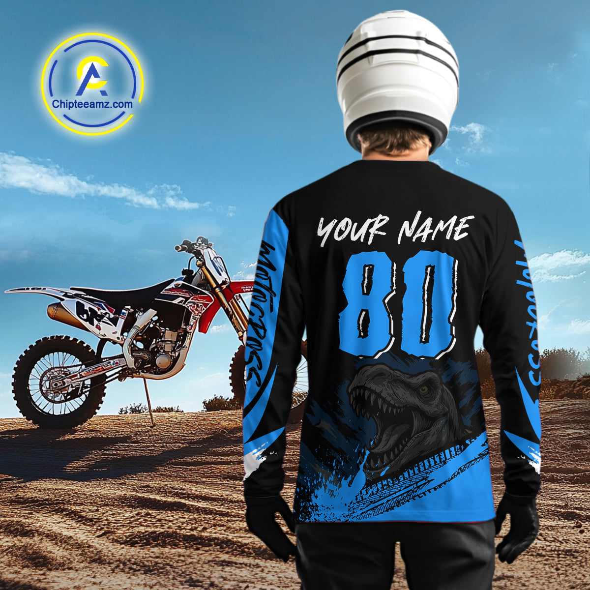Blue Dinosaur Motocross Racing Jersey UPF30+ MX Racing Dirt Bike Jersey Kid Men Women DNT05