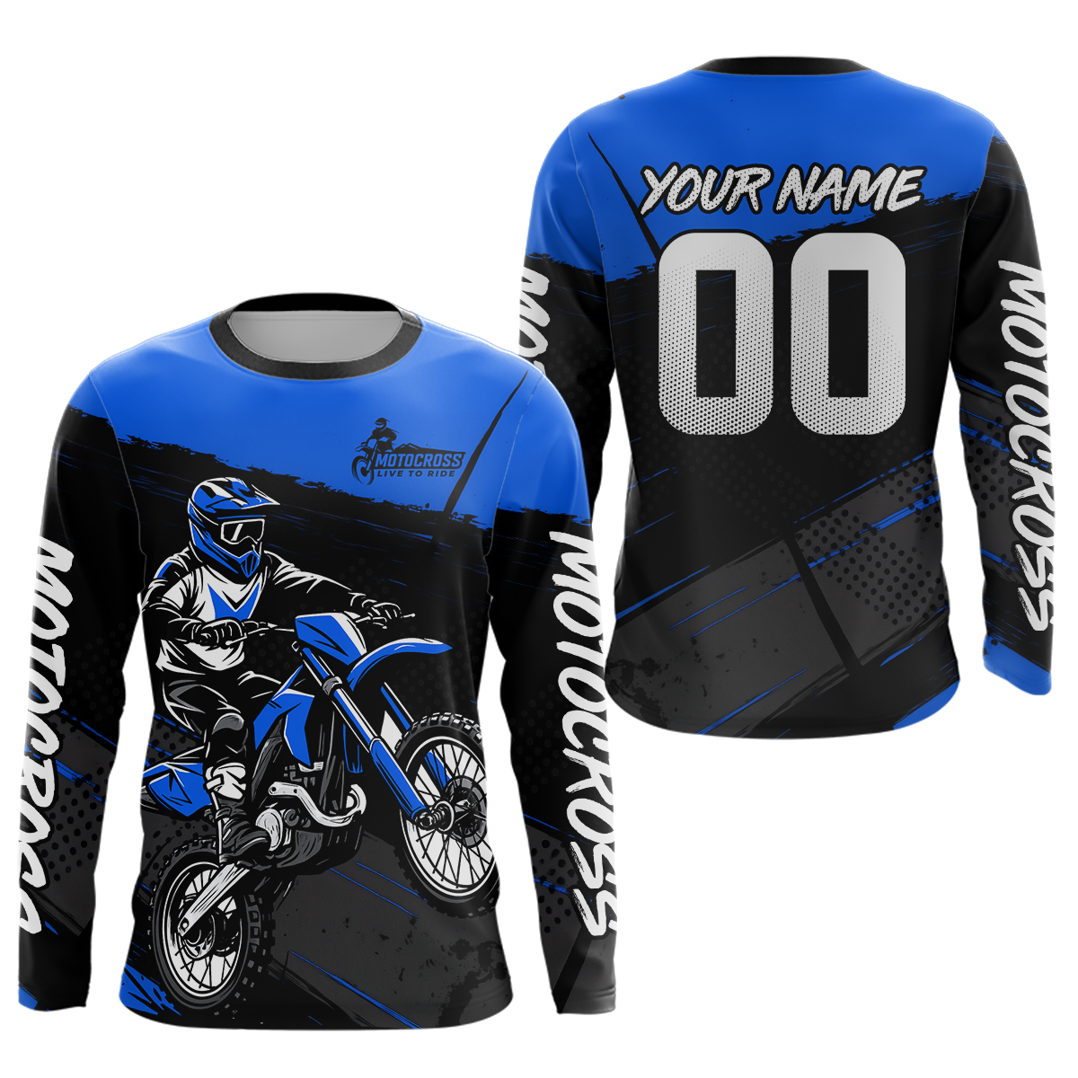 Blue Motocross Jersey for Men Women Kid Dirt Bike Shirts Custom Off road Riding Shirt XM463
