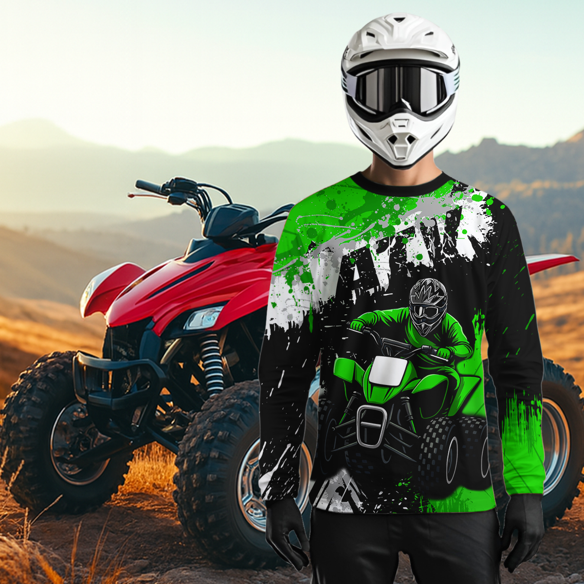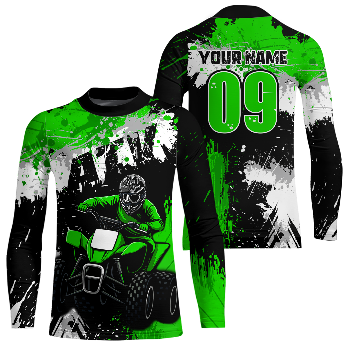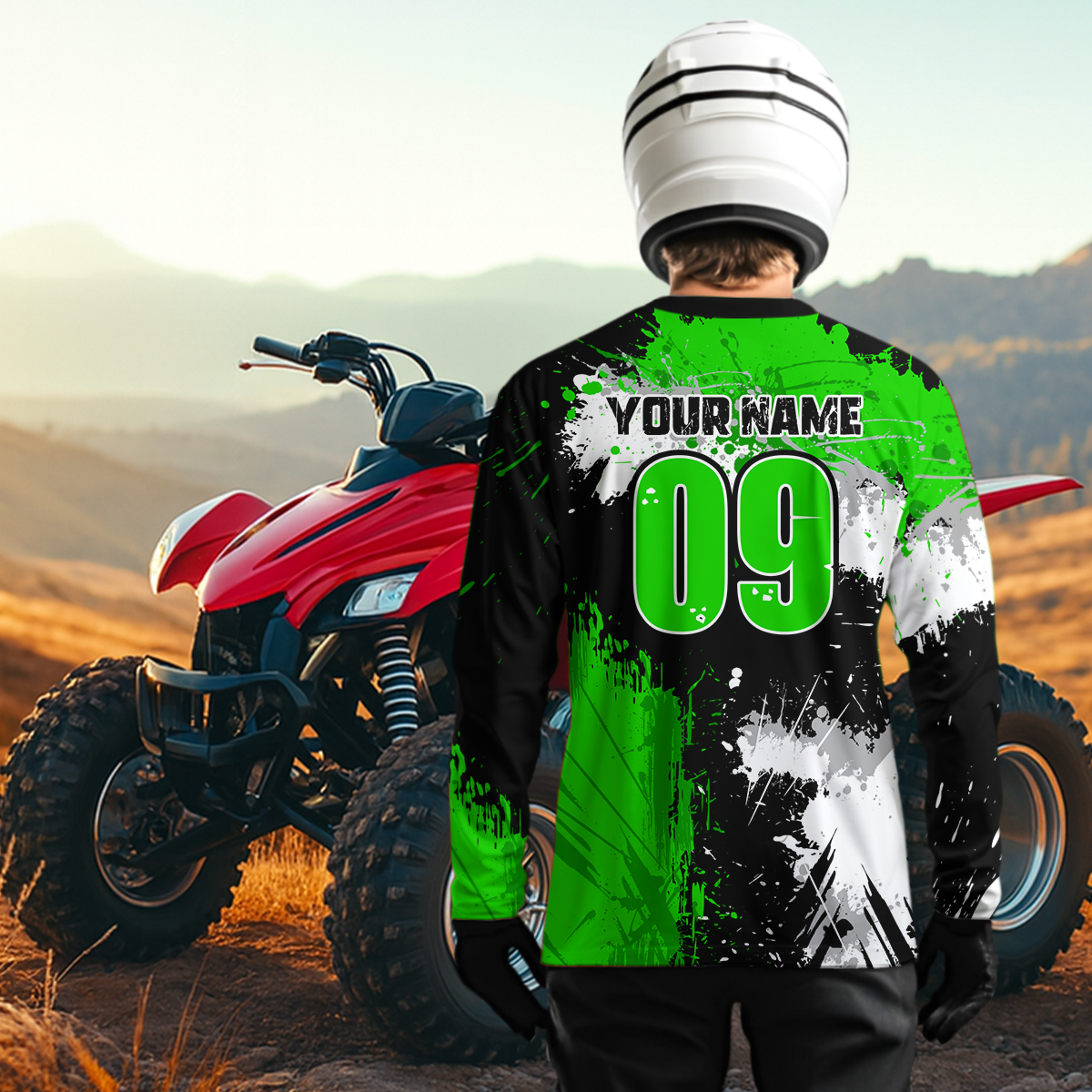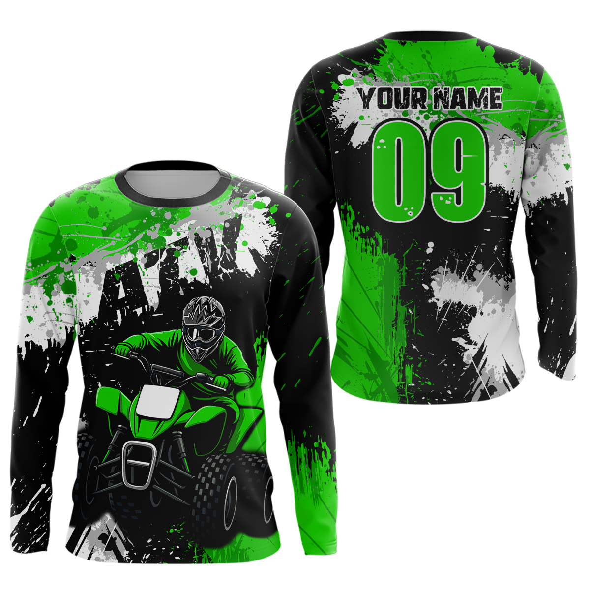 Green ATV Motocross Jersey Personalized UPF30+ Adult&Kid Quad Bike Shirt Atv Mx Off-Road Dirt Bike NHN003