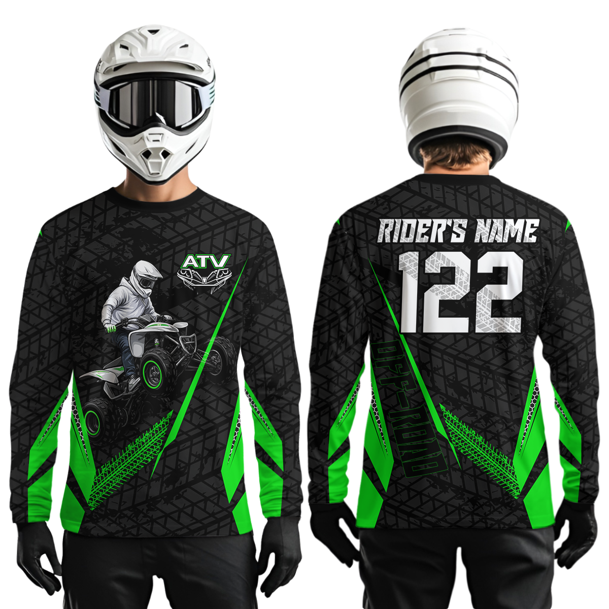 Personalized ATV Motocross Jersey For Adult & Kids UPF30+ Green Quad Bike Shirt Off-Road ATV MX Racing NHN013