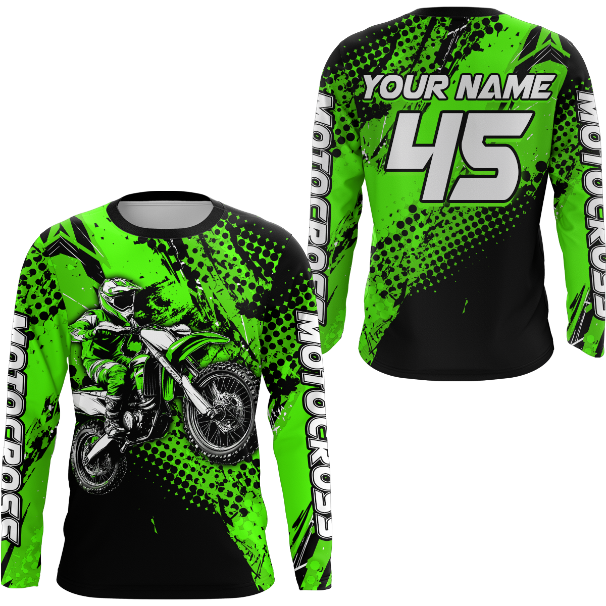 Green Youth Motocross Shirts Custom Racing Dirt Bike Jersey Kid Men Women UPF30+ DNT18