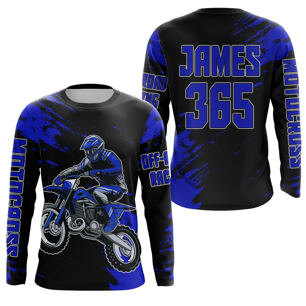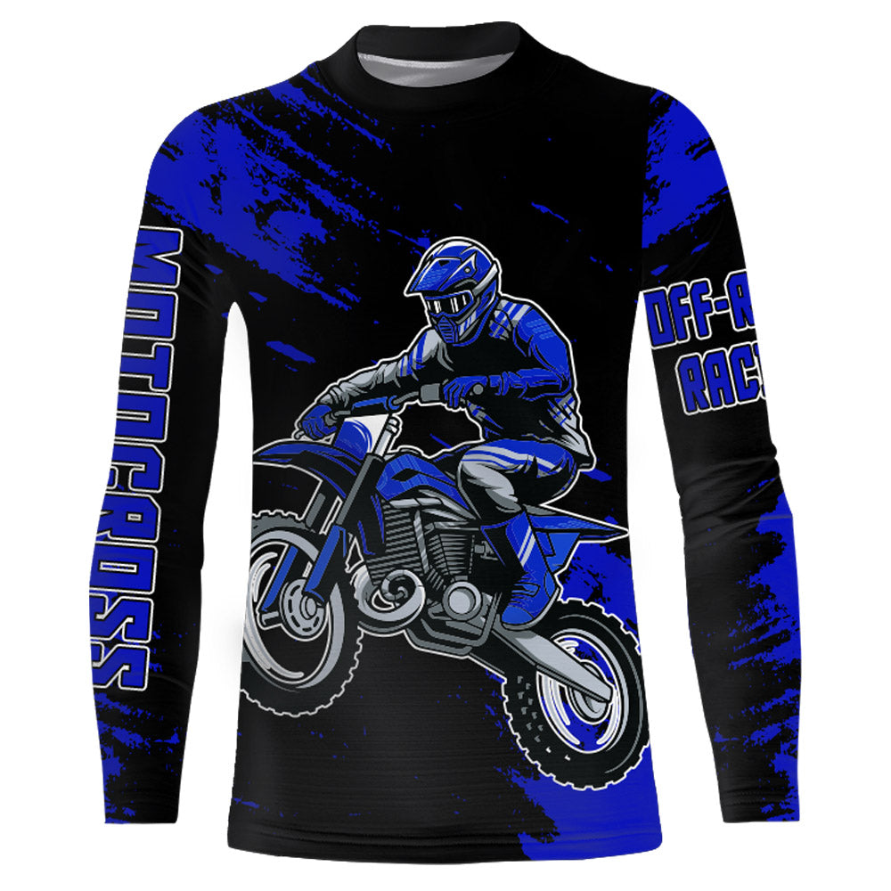Motocross Jersey Youth Men Kid UPF30+ Blue Racing Dirt Bike Riding Jersey Motorcycle XM225