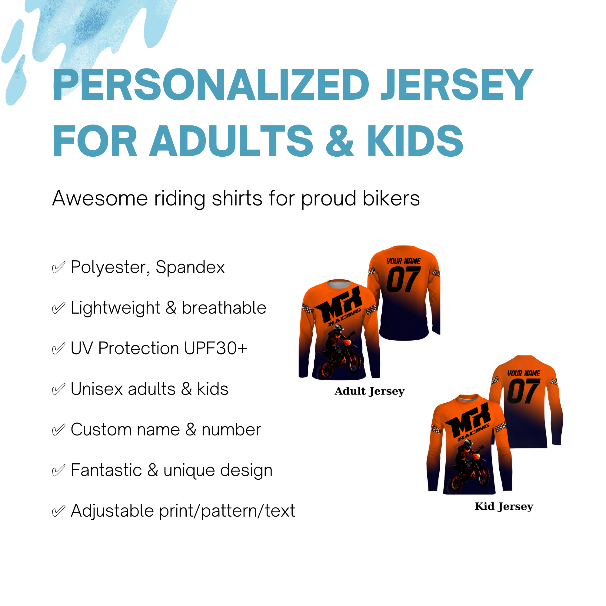 - PERSONALIZED MOTORCYCLE JERSEY: This super cool shirt is exactly what all bikers are looking for. Add your name/number to make it a unique one that bears your own imprints.
