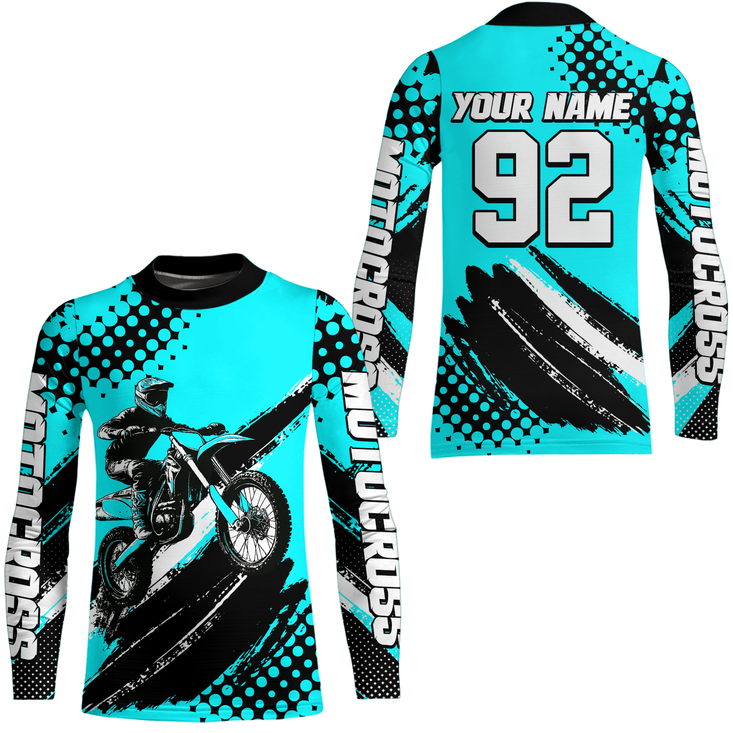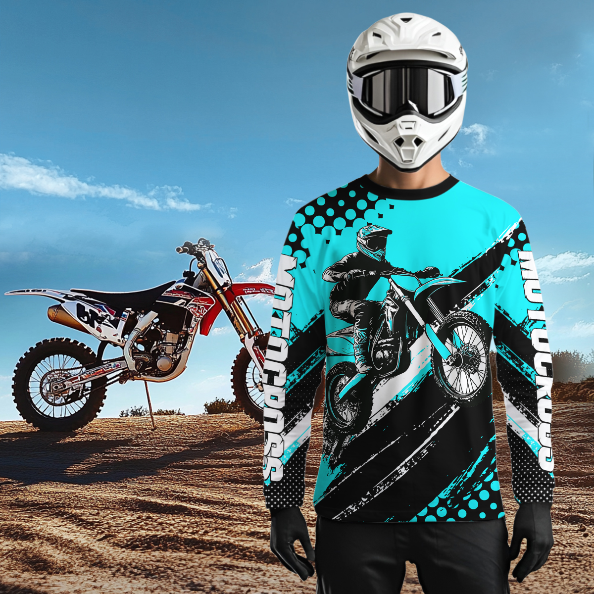 Personalized Turquoise Racing Jersey Motocross for Men Women Kid Upf30+ Youth Off-Road Racing Jersey DNT02