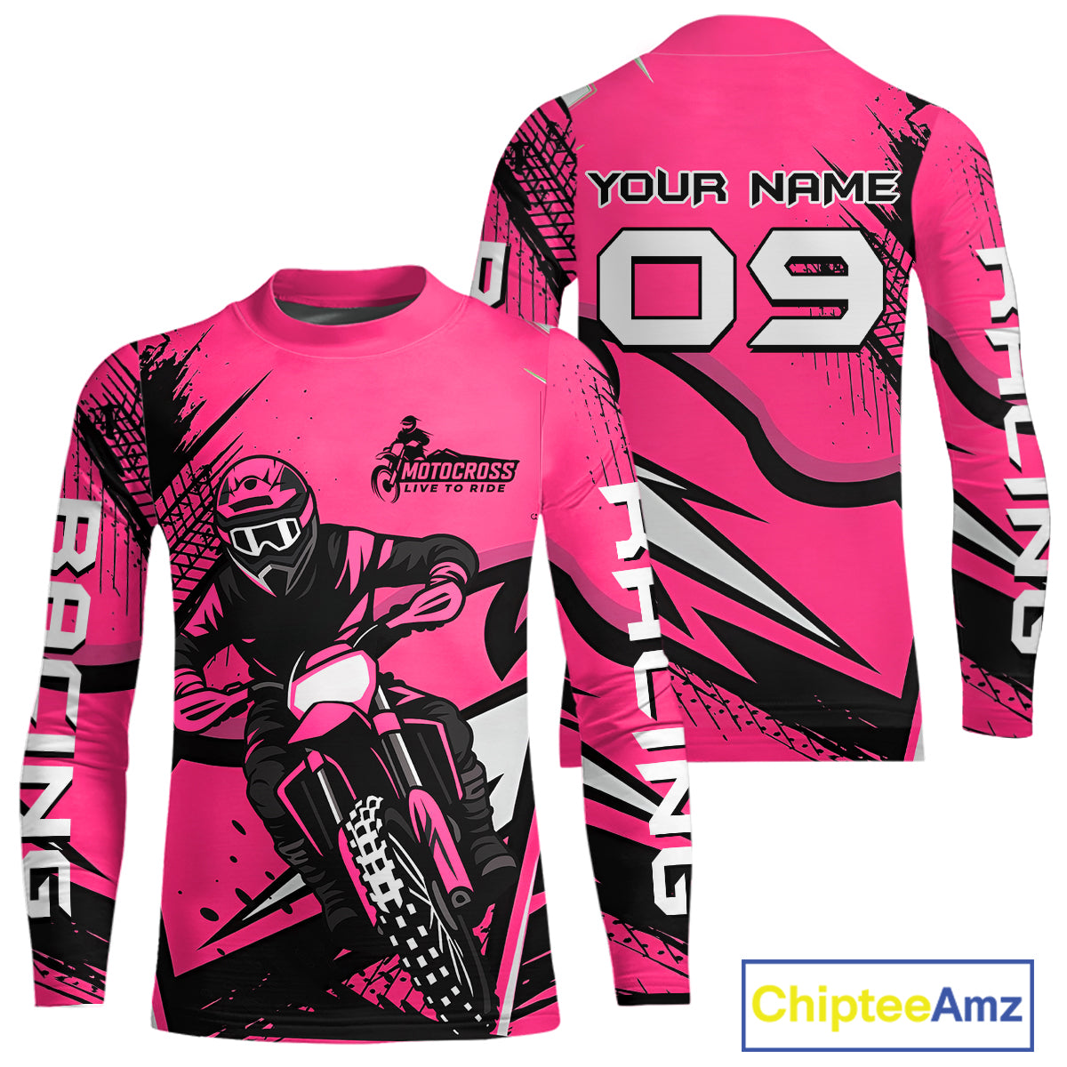 Pink Custom Motocross Jersey Men Women Kid Dirt Bike Shirts Off road Riding Shirt XM465