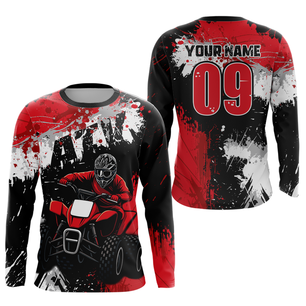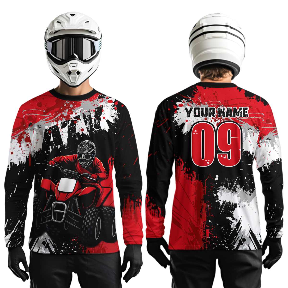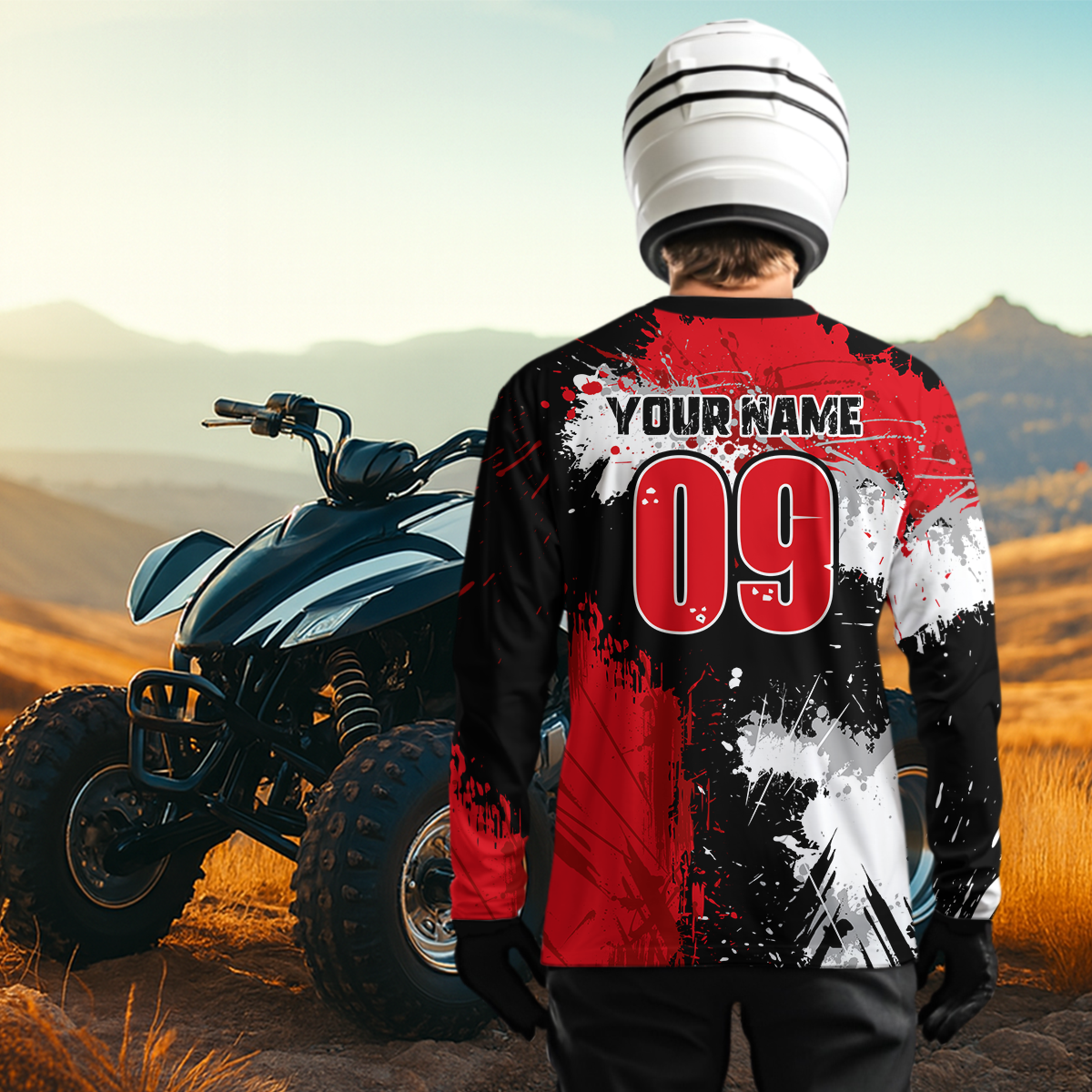 Red ATV Motocross Jersey Personalized UPF30+ Adult&Kid Quad Bike Shirt Atv Mx Off-Road Dirt Bike NHN003