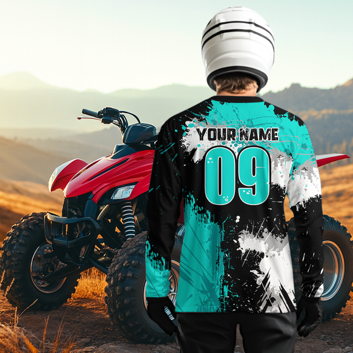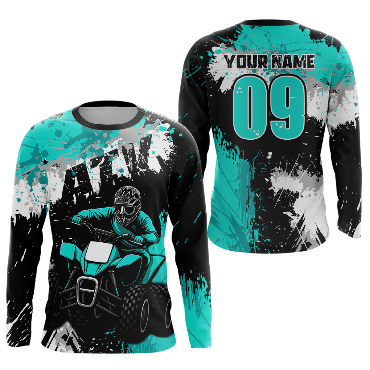 Turquoise ATV Motocross Jersey Personalized UPF30+ Adult&Kid Quad Bike Shirt Atv Mx Off-Road Dirt Bike NHN003