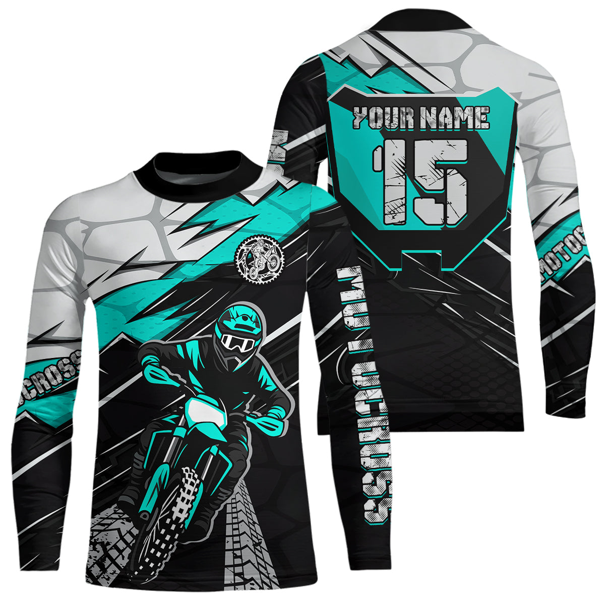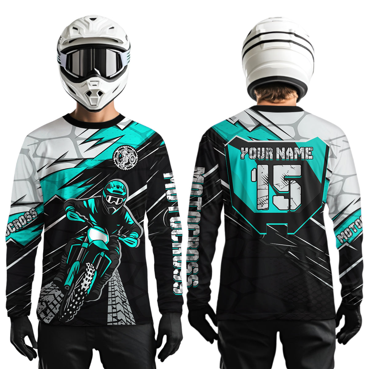Turquoise Motocross Jersey Custom Dirt Bike Shirts for Men Kid Women Motorcycle Shirt XM488