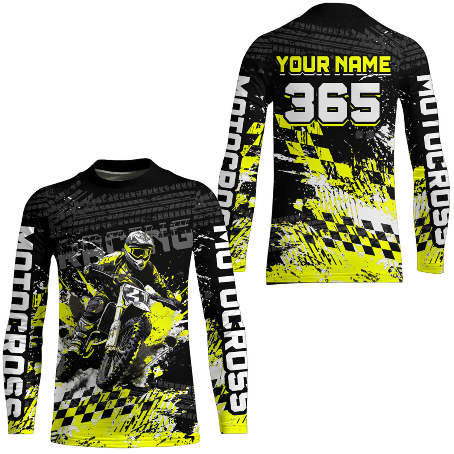• PERSONALIZED MOTOCROSS JERSEY: This super cool long-sleeved shirt is exactly what all bikers are looking for. Add your name/number to make it a unique one that bears your own imprints.