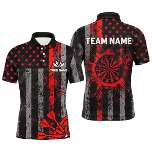 Custom Red Grunge US Flag Patriotic Darts Shirt For Men, Retro Darts Board Darts Team Jerseys TDM2183
