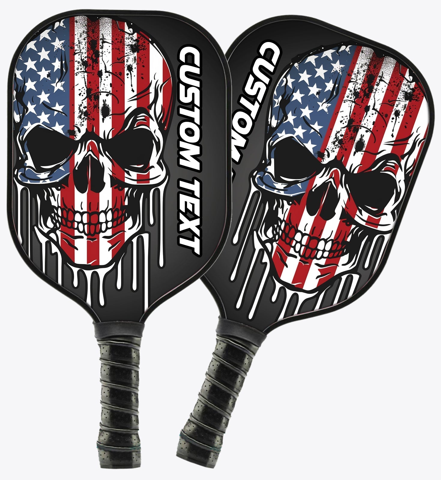 Grunge American Flag Skull Custom Patriotic Pickleball Paddle, Us Pickleball Paddle, Halloween Pickleball Gifts IPHW7251