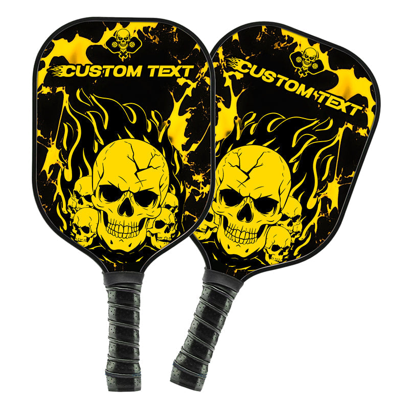 Black And Yellow Flame Skull Custom Pickleball Paddle, Halloween Pickleball Paddles Gifts IPHW7464