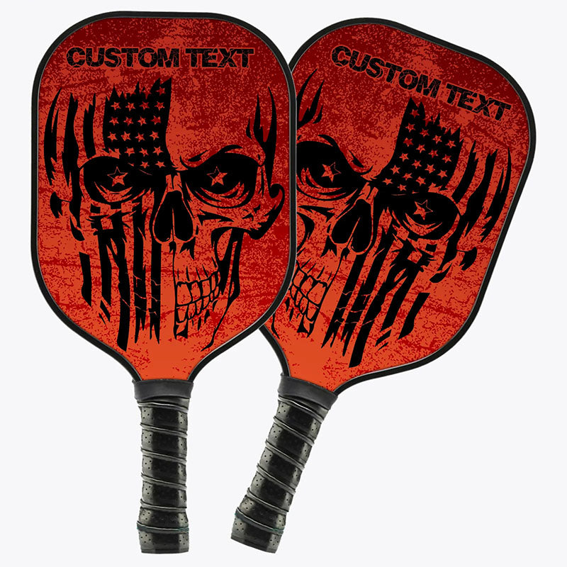 American Flag Skull Custom Us Pickleball Paddle, Patriotic Pickleball Paddle Halloween Pickleball Gifts IPHW7473