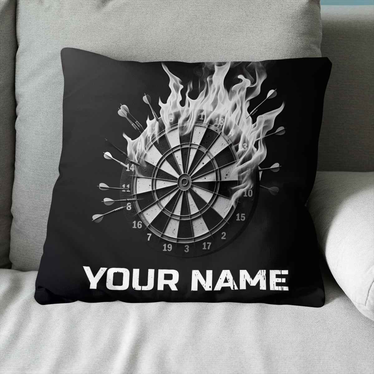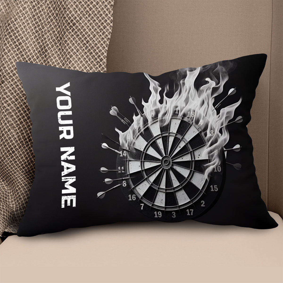 Black White Darts Flame Custom Throw Pillow Personalized Darts Gifts LDT1159