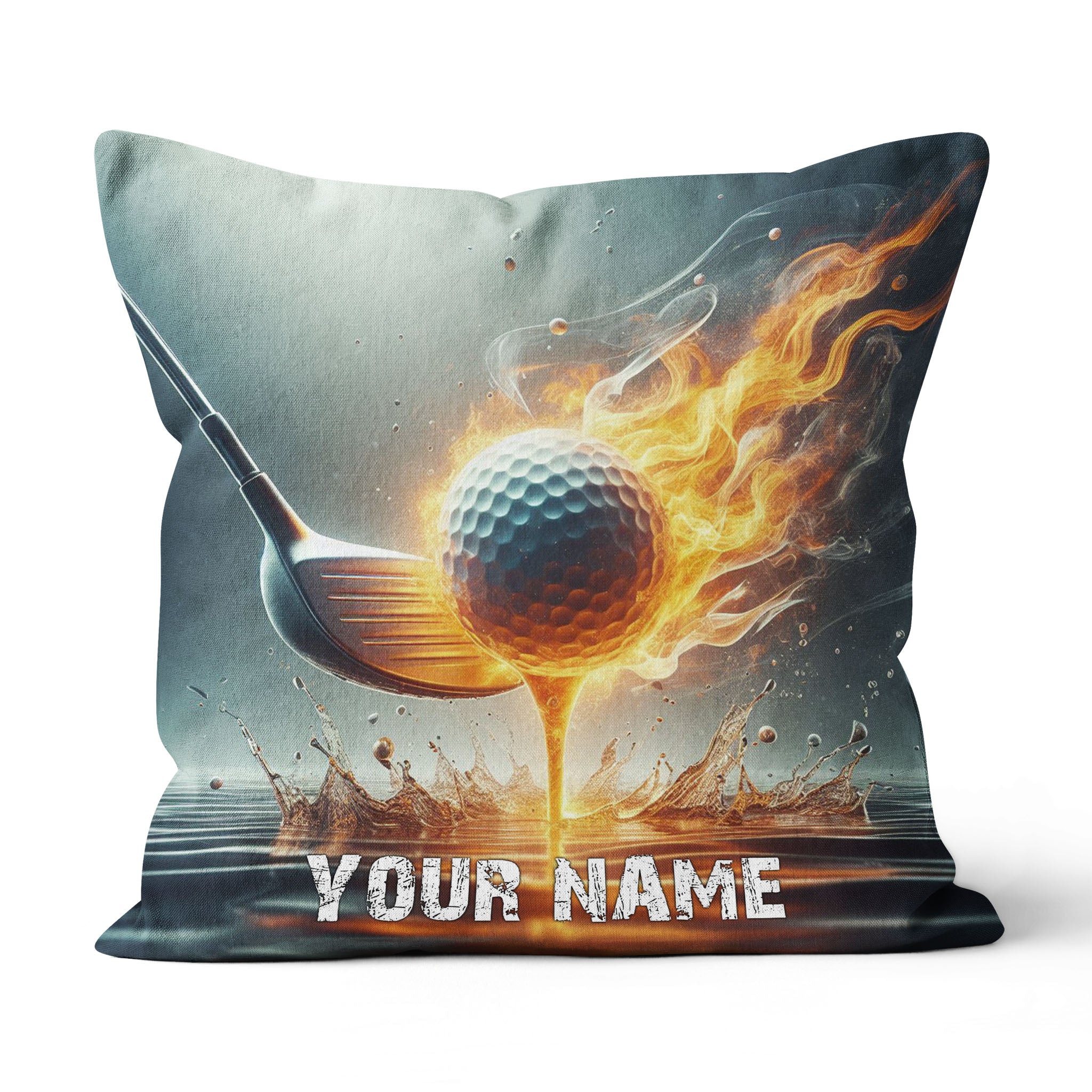 Fire & Water Golf Club & Ball Custom Throw Pillow Personalized Goft Gift LDT1153