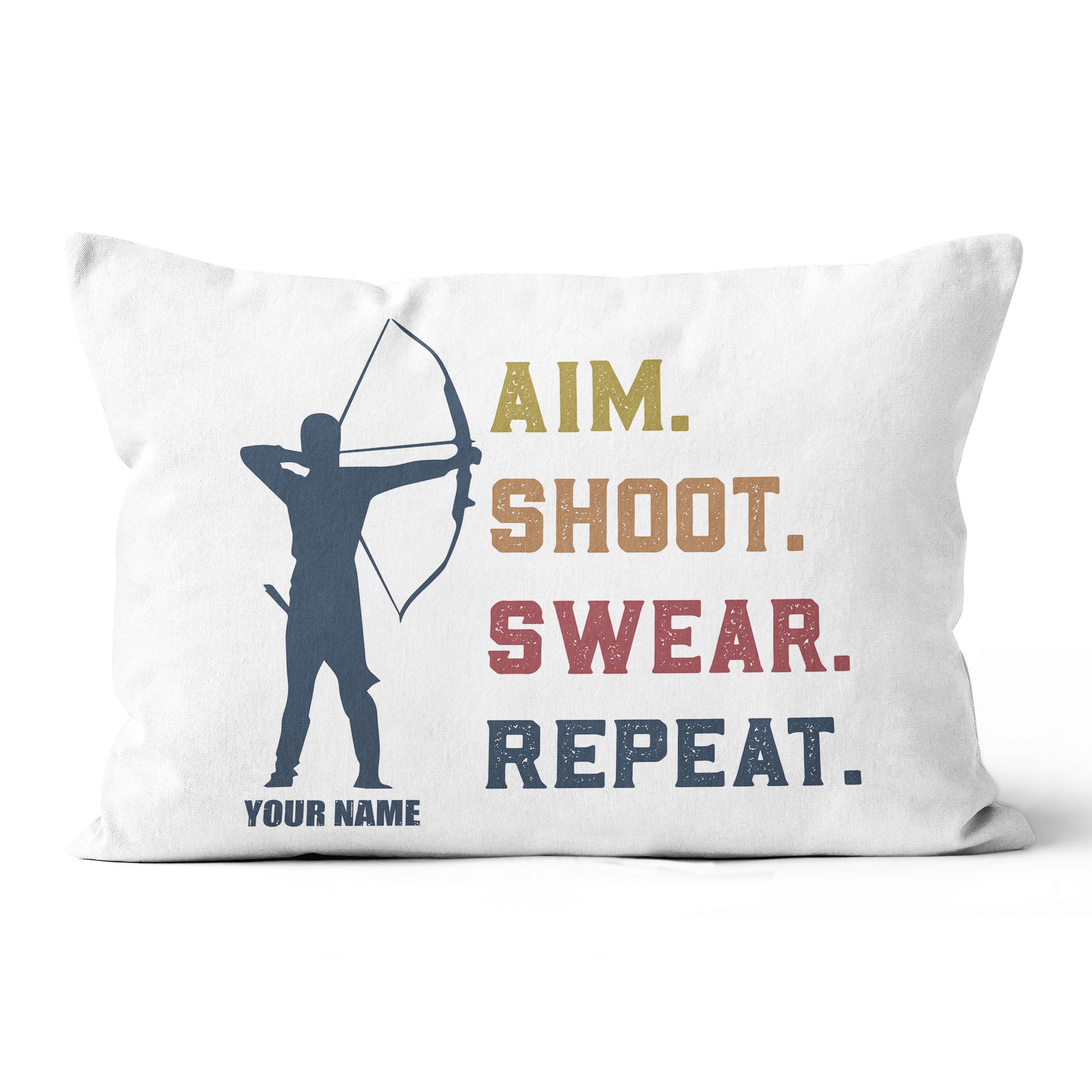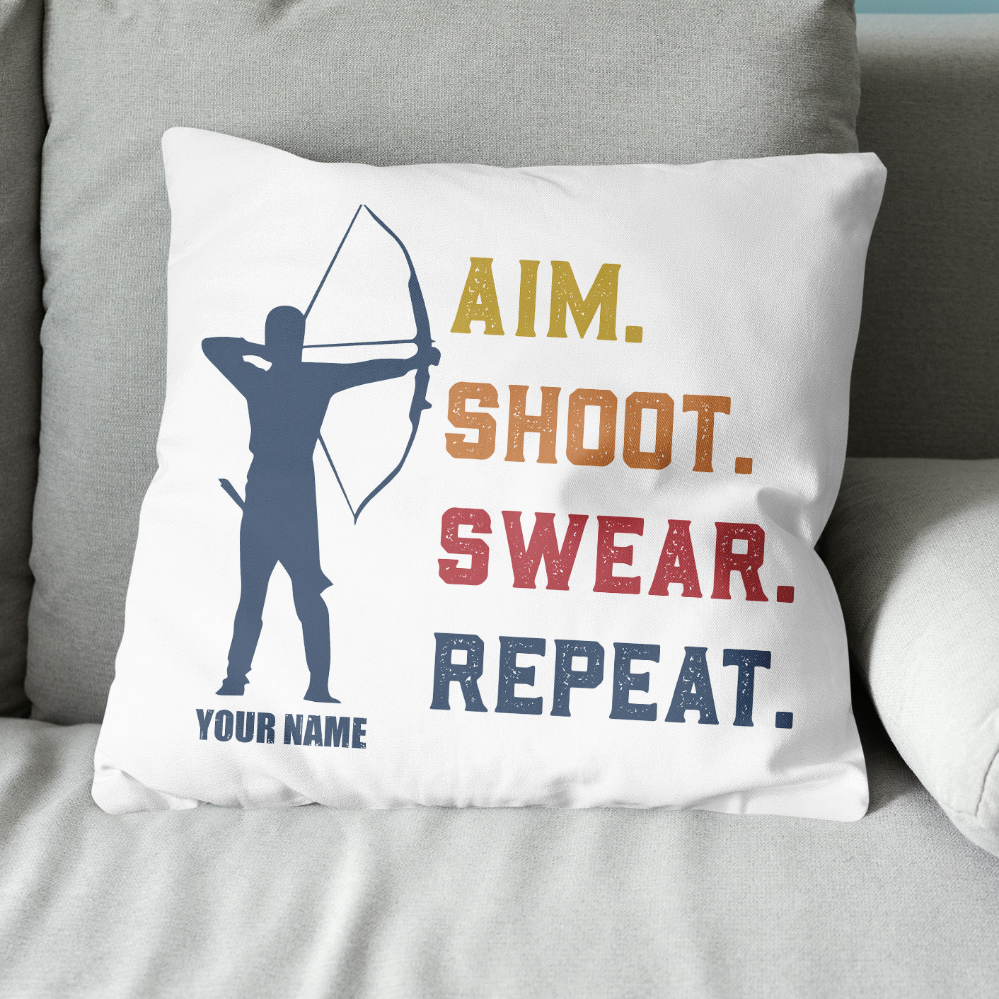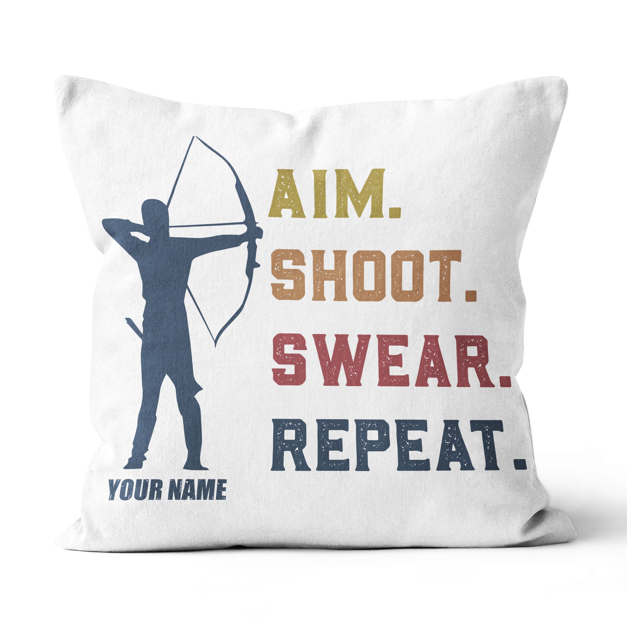 Funny Vintage Archery Aim Shoot Swear Repeat Custom Name White Pillow TDM0755