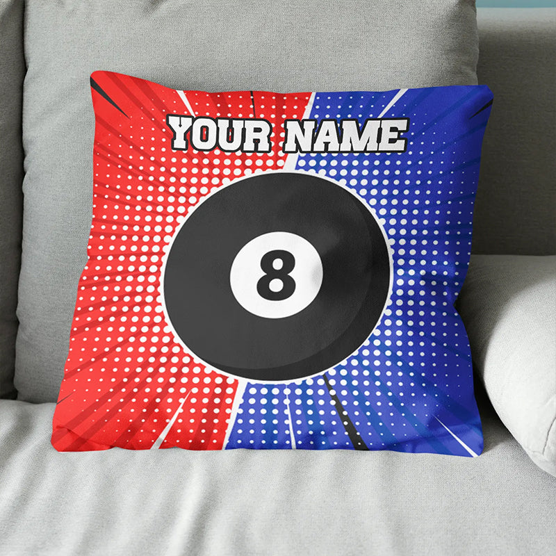 Personalized Blue Red 8 Ball Billiard Pillow Custom Pool Billiards Gifts VHM0841