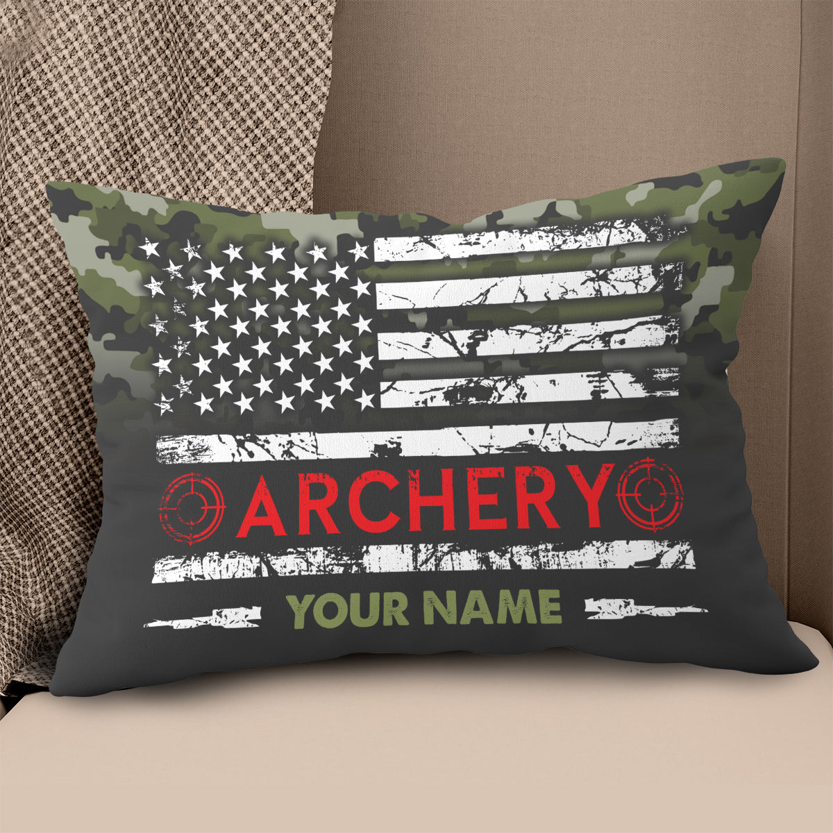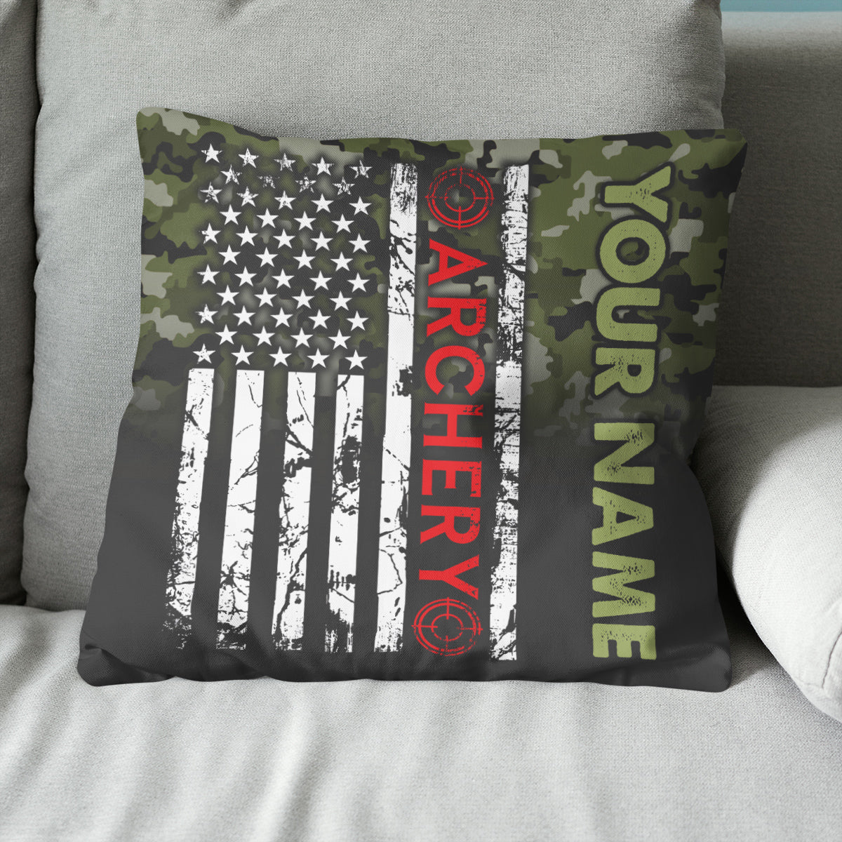 Personalized Green Camouflage US Flag Archery Pillows Best Archery Gifts VHM0849