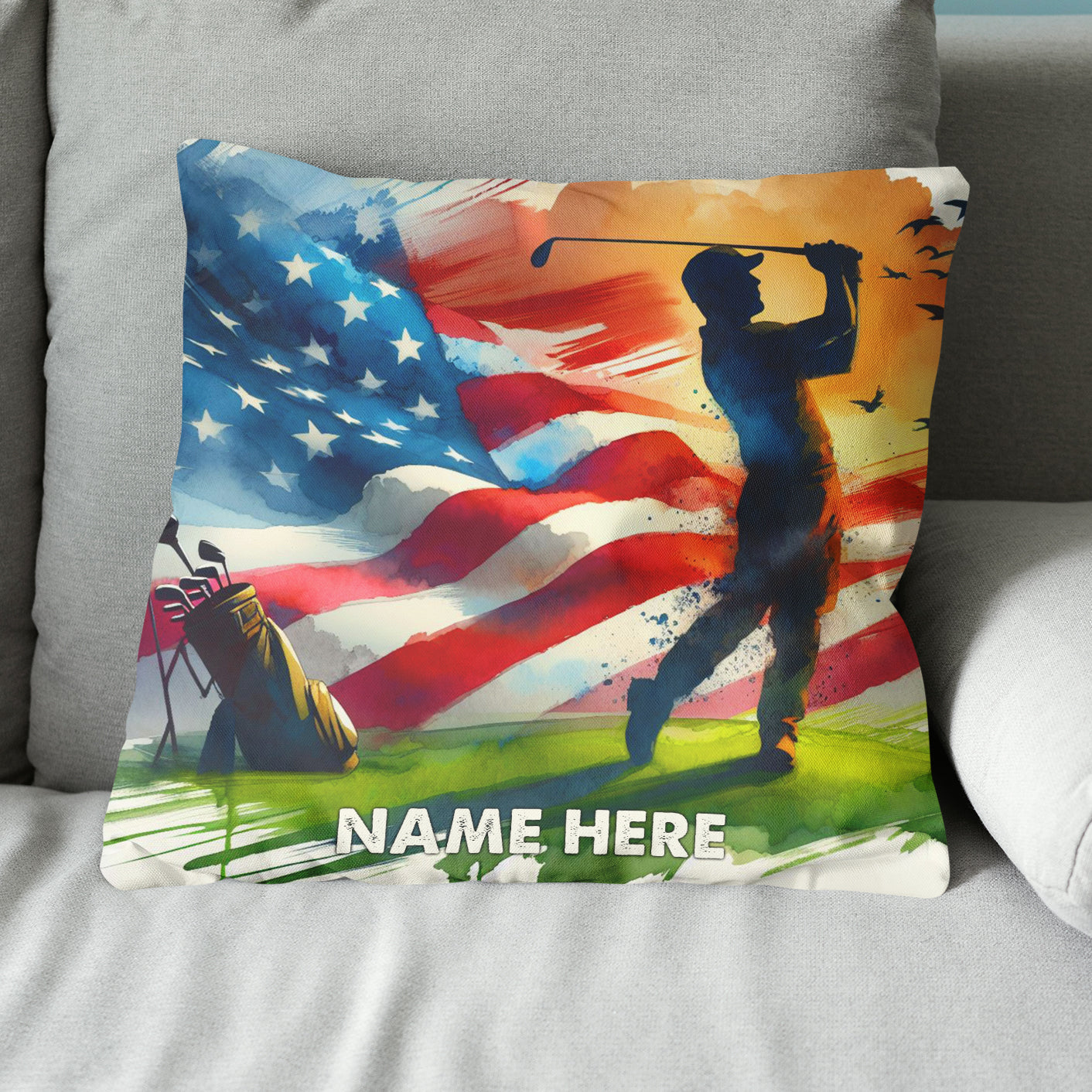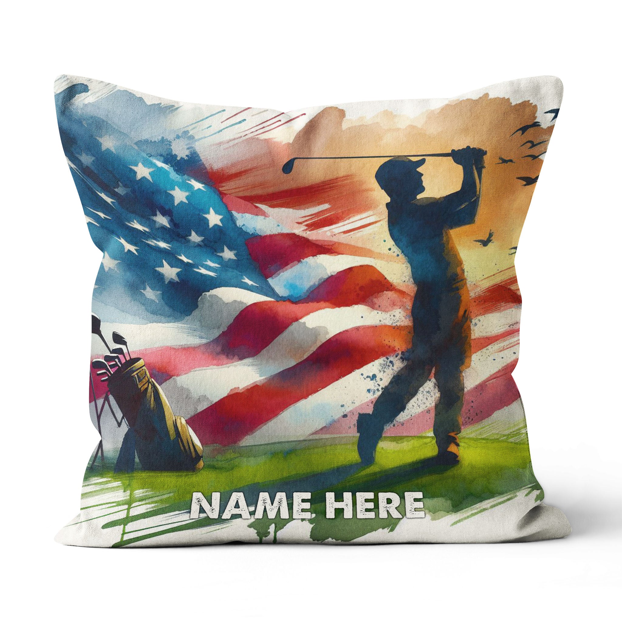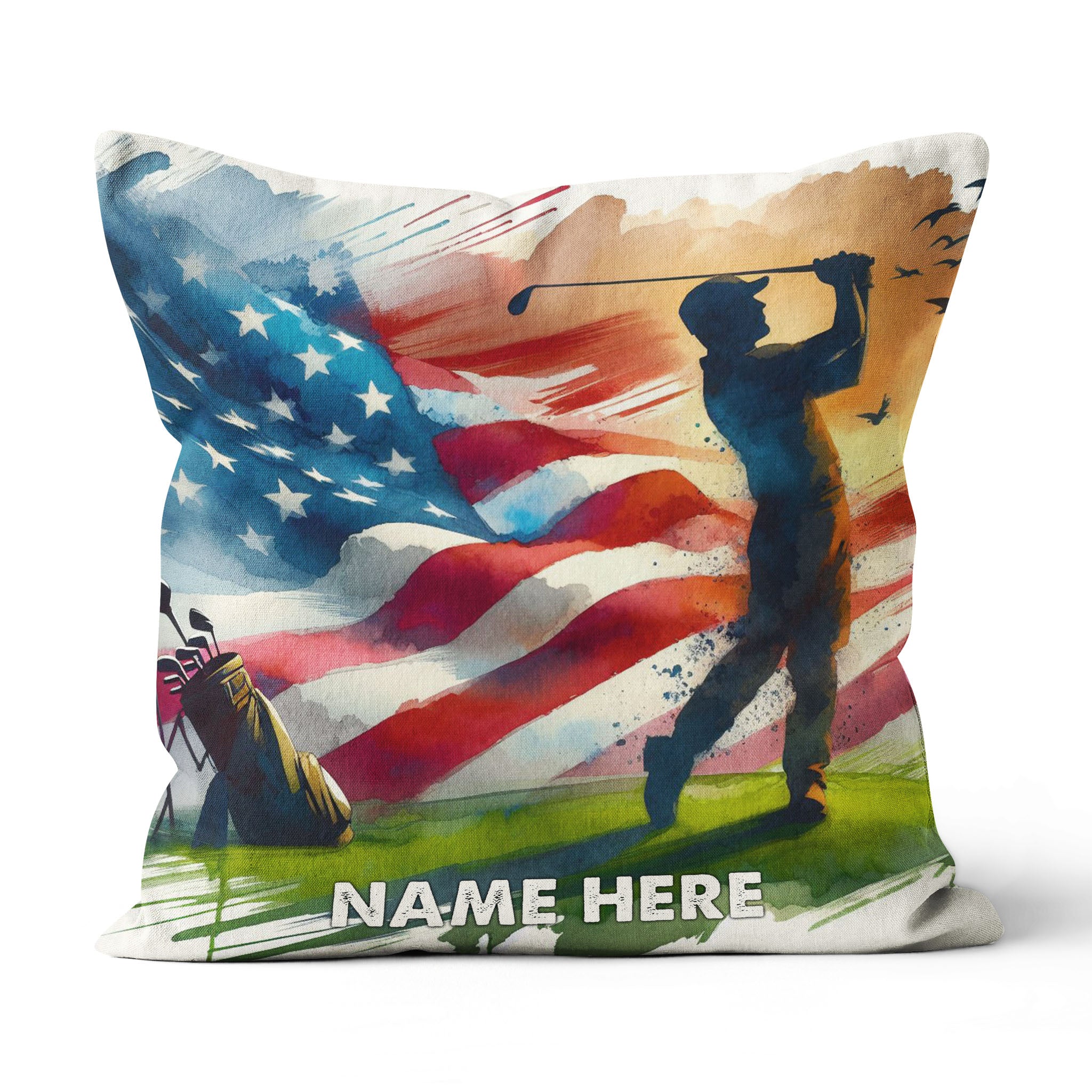 Watercolor Usa Flag Custom Golf Pillow Personalized Patriotic Golf Gifts LDT1176