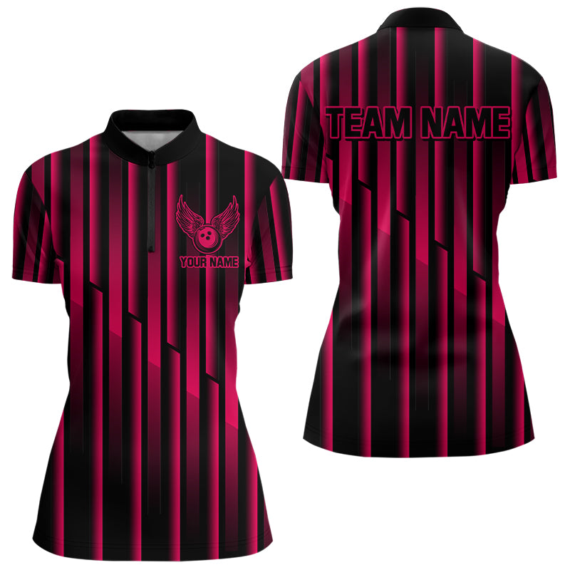 Black and Pink neon light pattern Bowling Polo, Quarter Zip Shirt For Women Custom Team Bowling Jersey NQS9106