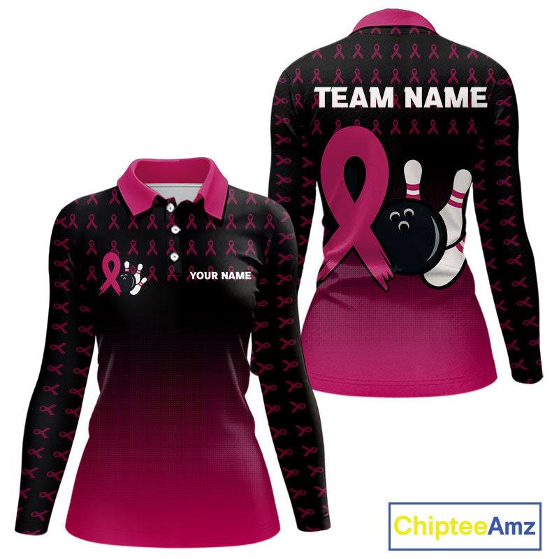 Black and Pink ribbon pattern Bowling shirts for Women Custom breast cancer bowling team jerseys NQS10158