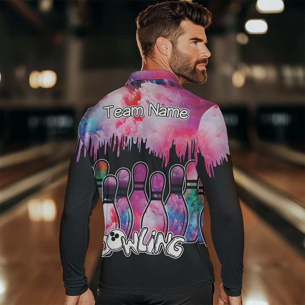 Black and Pink watercolor Bowling Polo, Quarter Zip Shirts For Men Custom Bowling Jersey Team Outfit NQS9593