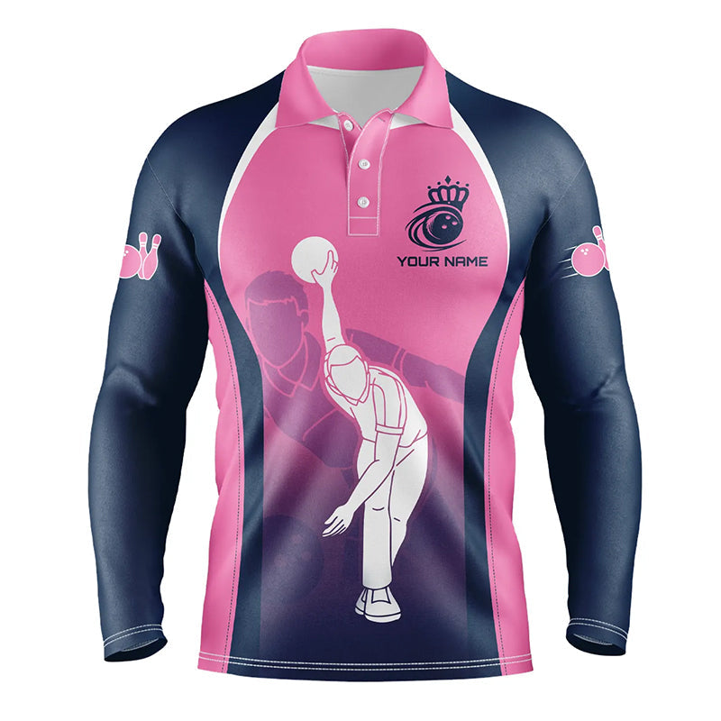 Blue and pink Bowling polo shirts for men custom bowling team shirts, personalized bowling jerseys NQS7221