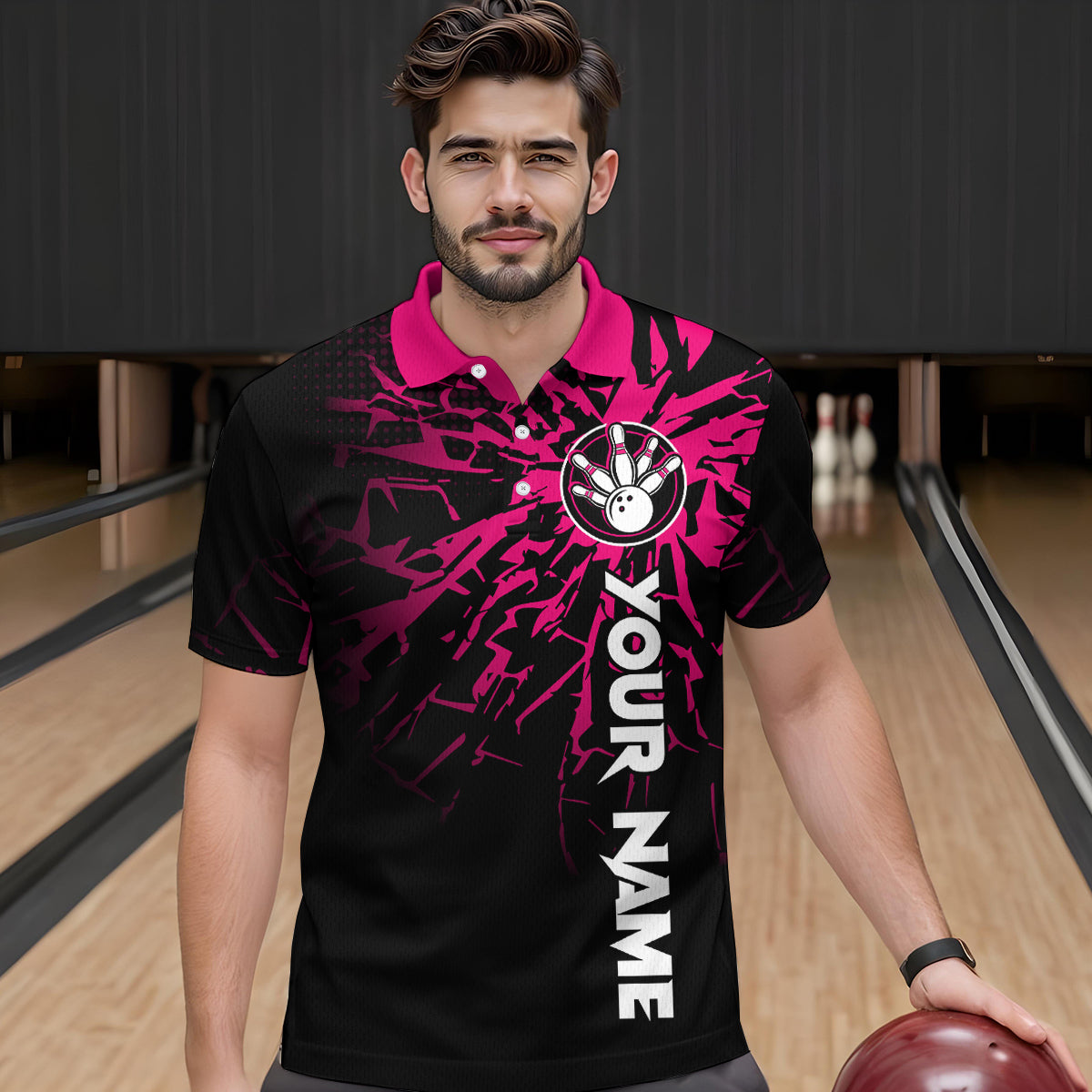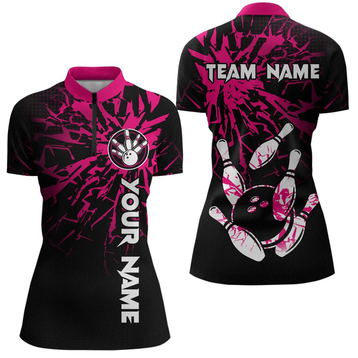Custom Pink Bowling Shirts Funny Bowling Jersey for Men Women Team Polo&1/4 Zip MBL44