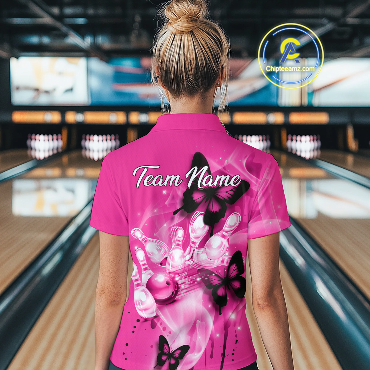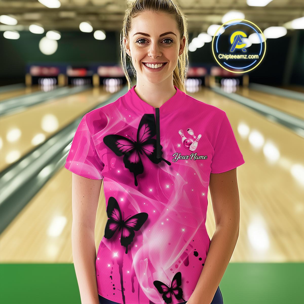 Custom Pink Butterflies Bowling Shirts for Men Women Team MBL120
