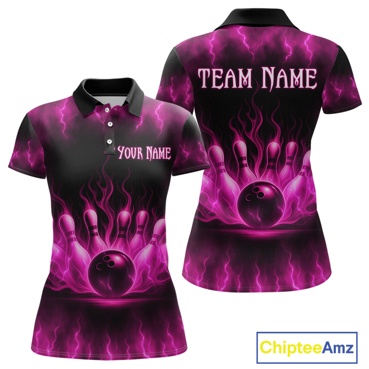 Custom Pink Flame Bowling Shirts for Women Men Team Bowling Polo and Quarter Zip MBL132