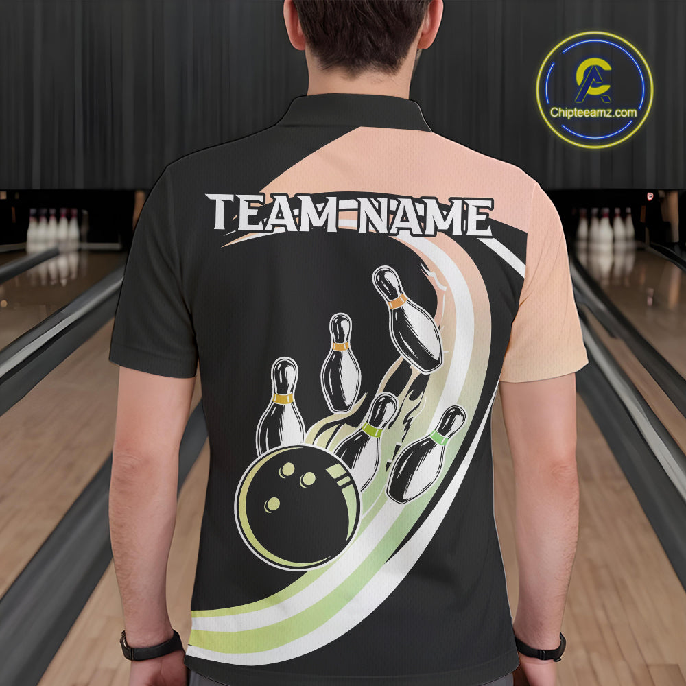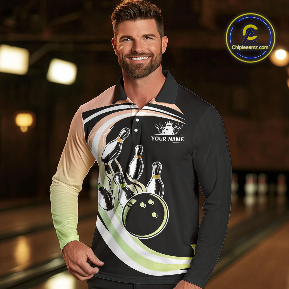 Pink and Green Gradient Bowling Shirts For Men Custom Bowling Team League Jersey, Gift For Bowler NQS10433