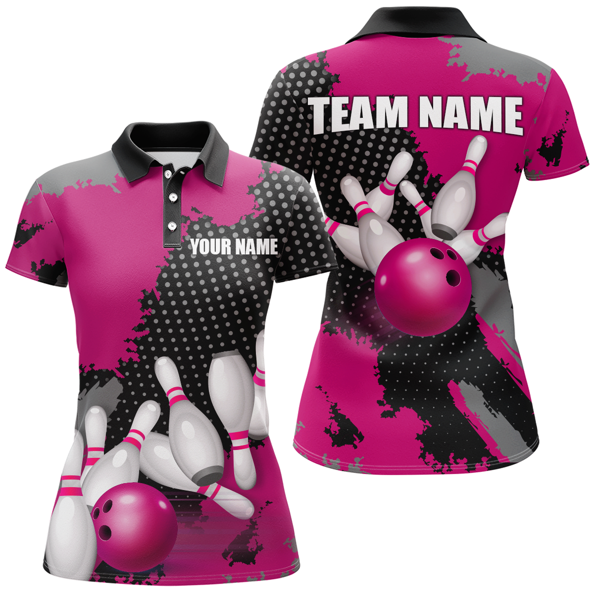 Pink Bowling Jersey Men Women Custom Bowling Team Shirts Unisex Bowling Polo Quarter-zip CP27