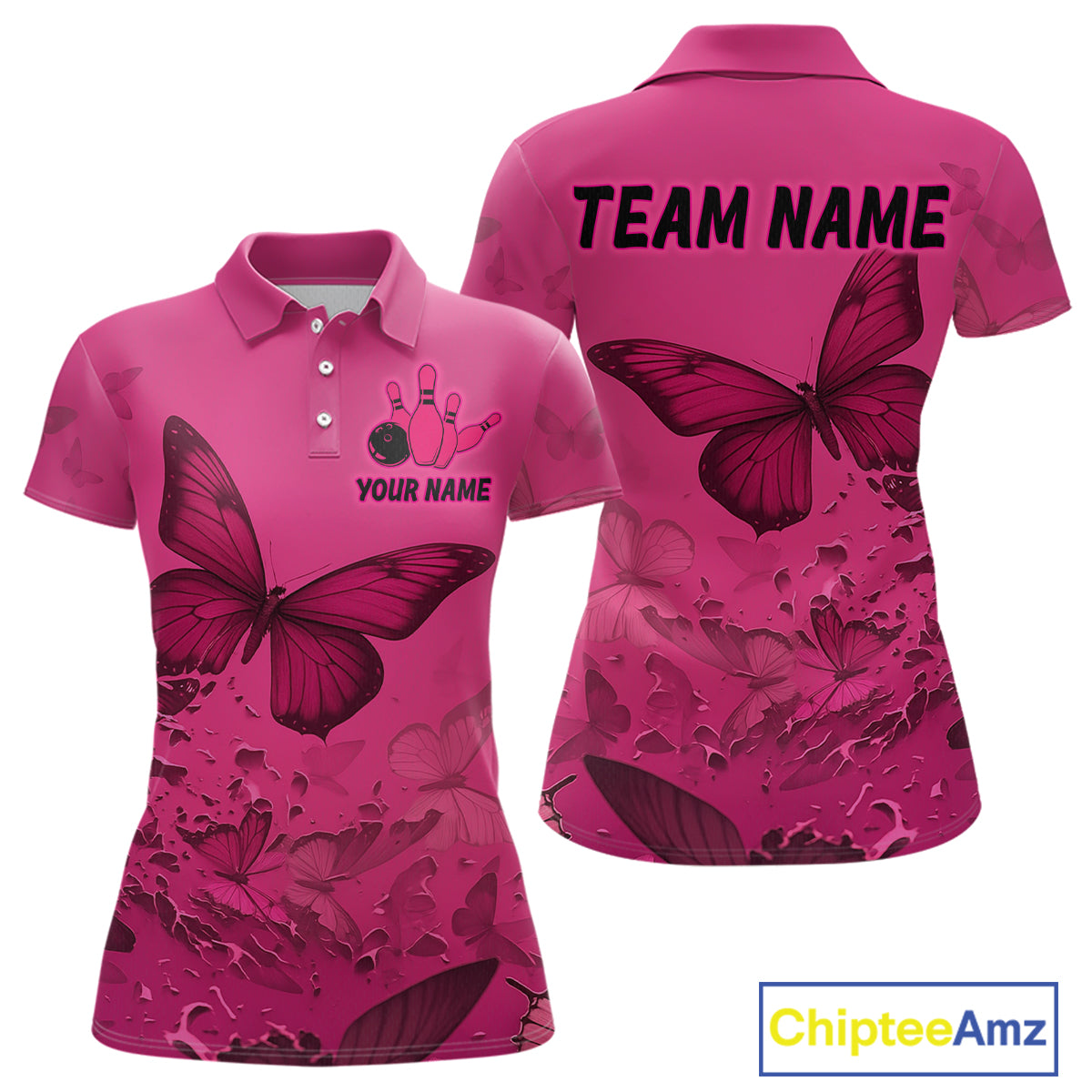 Pink Butterflies Bowling Shirts for Women Men Team Custom Bowling Polo and 1/4 Zip MBL121