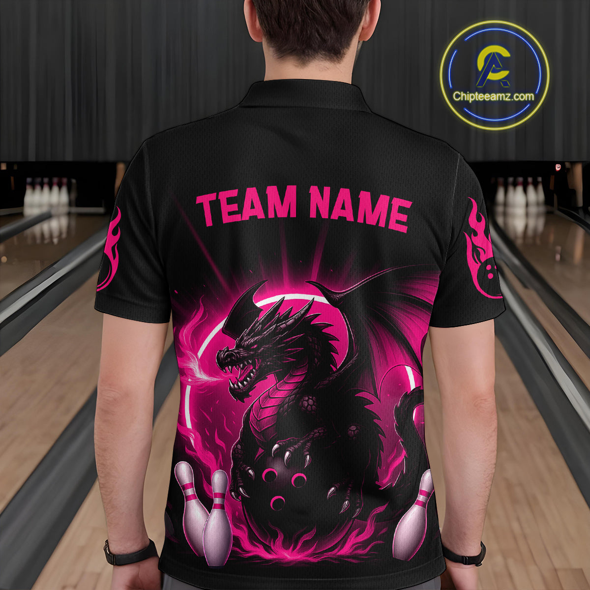 Pink Flame Dragon Bowling Shirt Custom Strike Bowling Team Jersey for Men Uniform QZT726