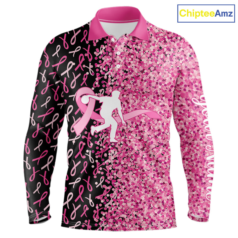 Pink glitter ribbon black Bowling Shirts For Men Custom Breast cancer bowling shirts gift for bowlers NQS10180