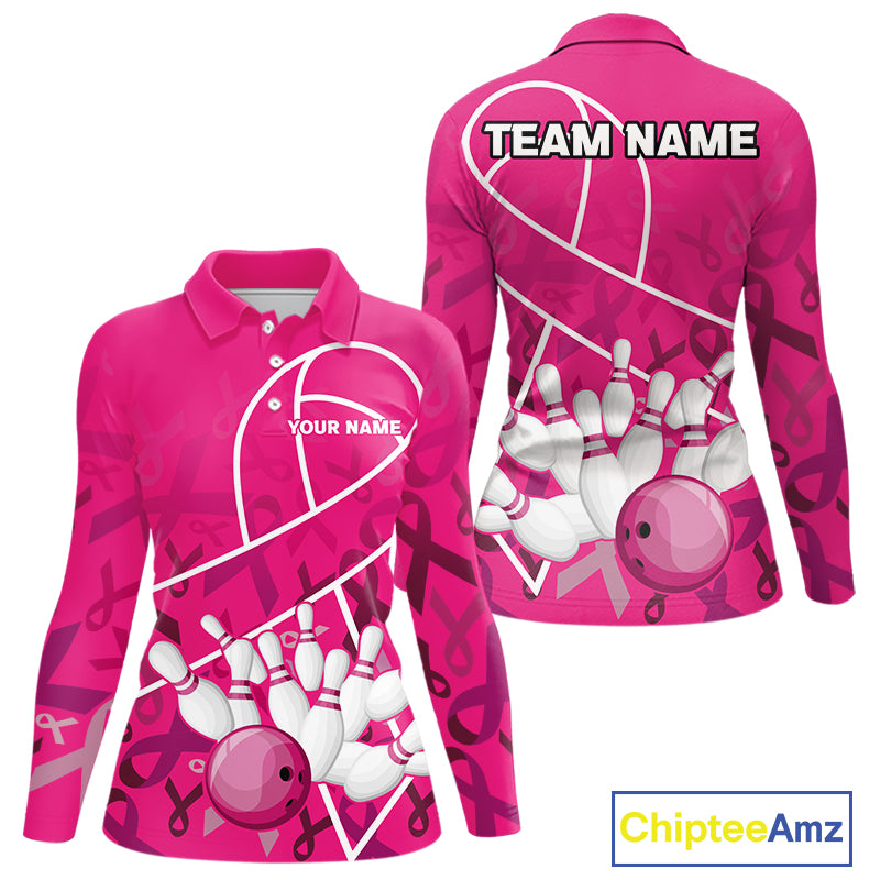 Pink ribbon pattern breast cancer awareness Bowling Shirts For Women Custom team bowling jerseys NQS10190